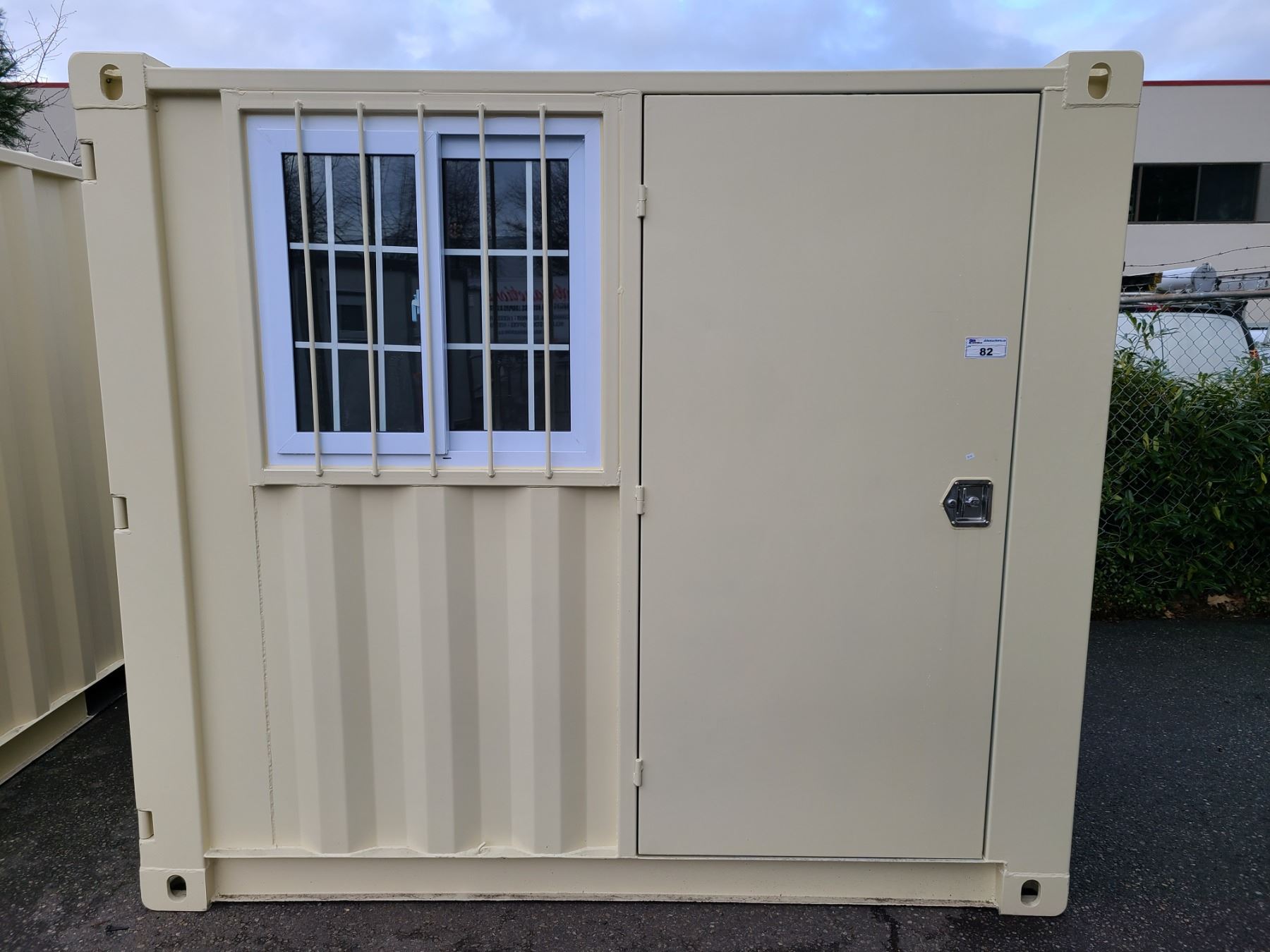 BRAND NEW 8' SHIPPING STORAGE CONTAINER, PORTABLE OFFICE, WITH DOOR, WINDOW AND REAR DOOR