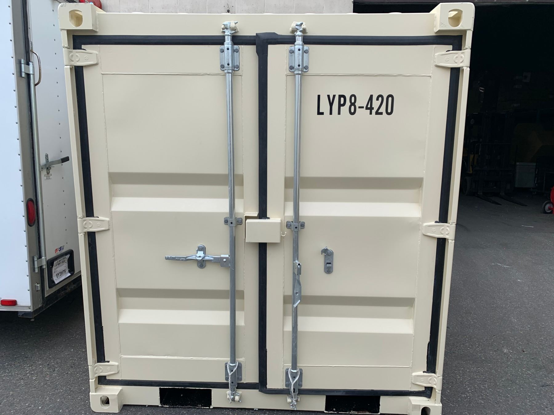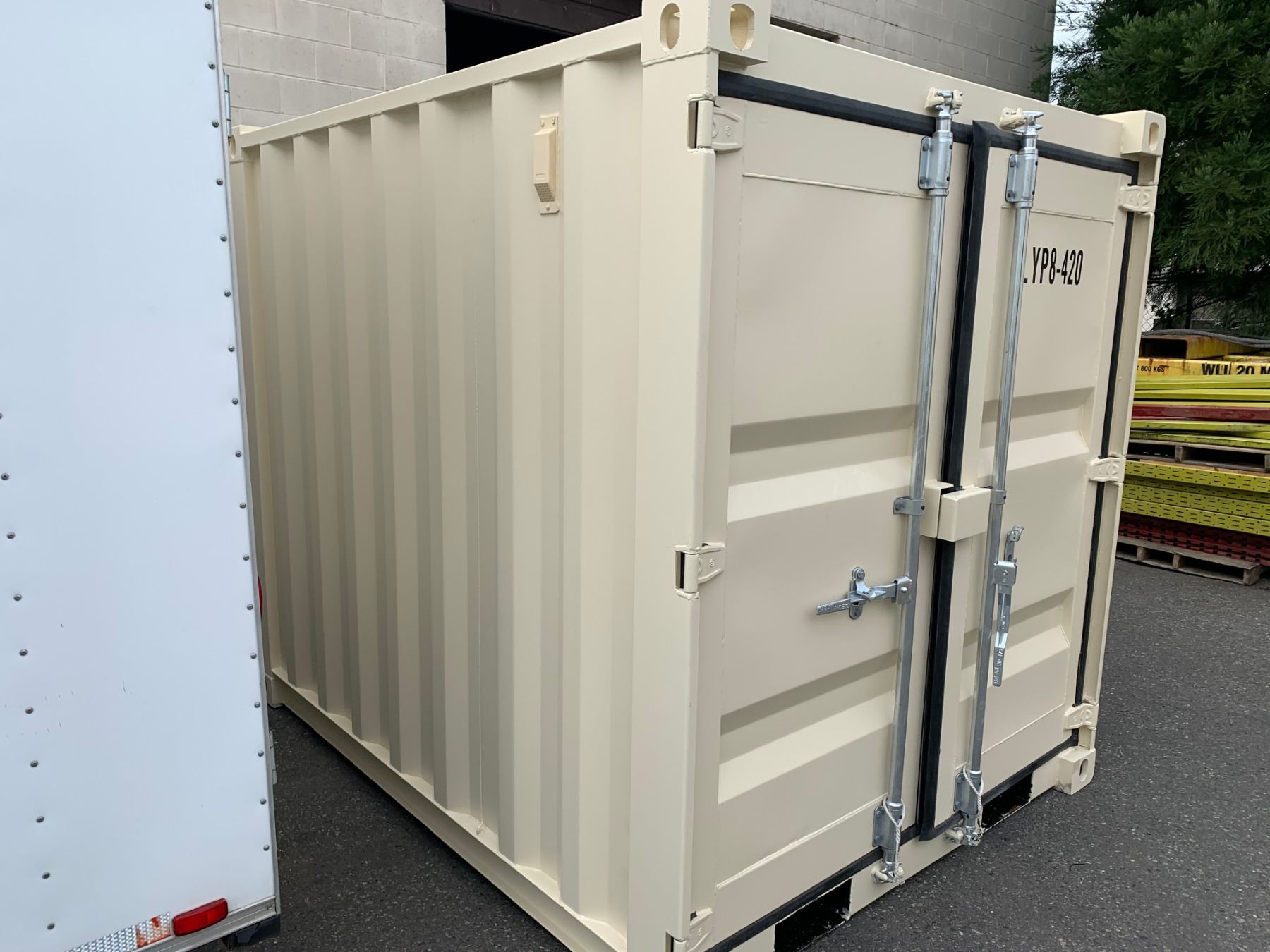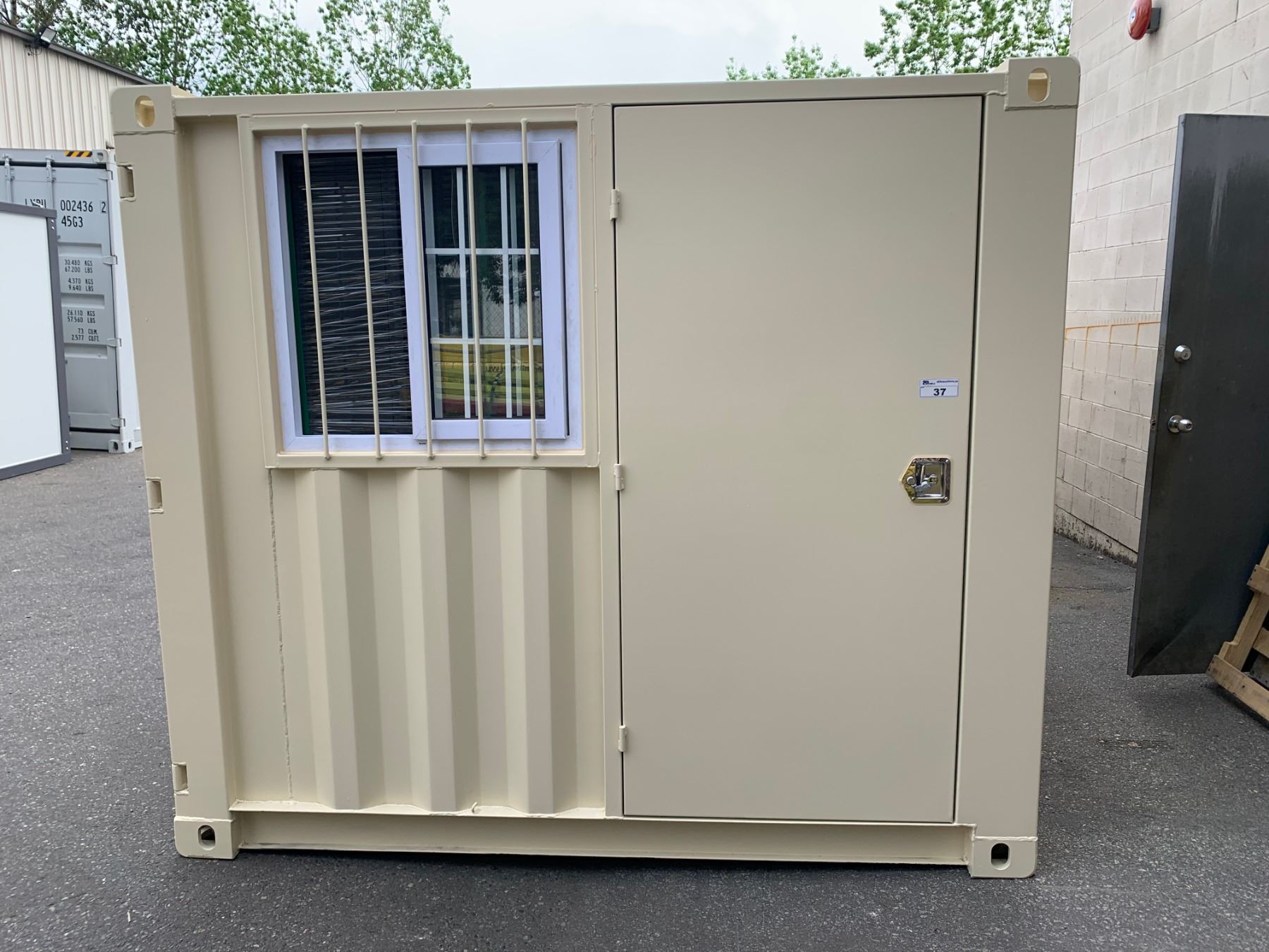 BRAND NEW 9FT STORAGE / OFFICE SHIPPING CONTAINER WITH BARRED WINDOW, SIDE LOCKING MAN DOOR & DUAL REAR SWING DOORS 8'2"L X 6'6"'W X 7'1"H
