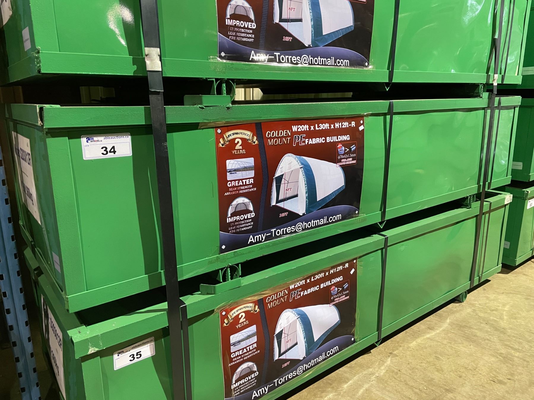 BRAND NEW GOLDEN MOUNT PE FABRIC ROUND ROOF STORAGE BUILDING ( DISASSEMBLED IN CRATE ) 12' H X 30' L X 20' W