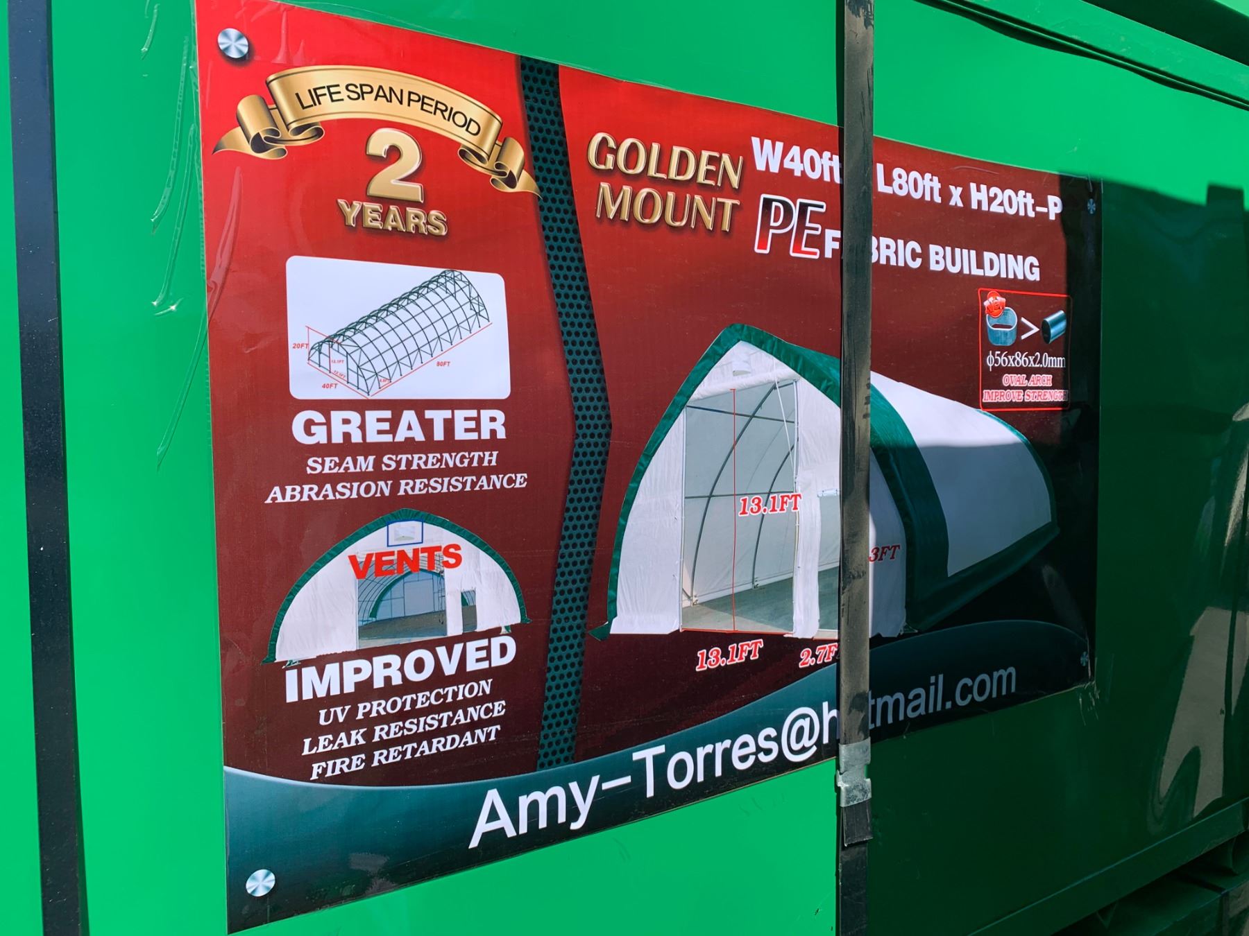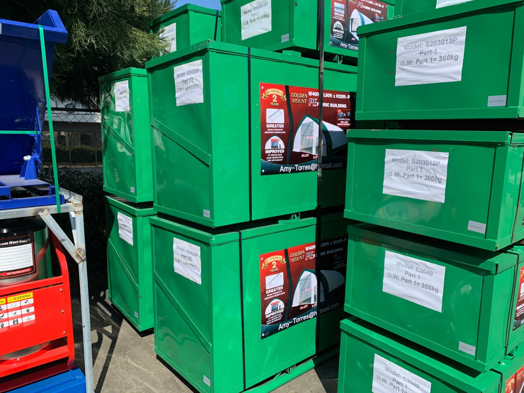 BRAND NEW GOLDEN MOUNT PEAK 408020P STORAGE SHELTER 40'X80'X20' 2 CRATES GW 2060KG FOR PAIR