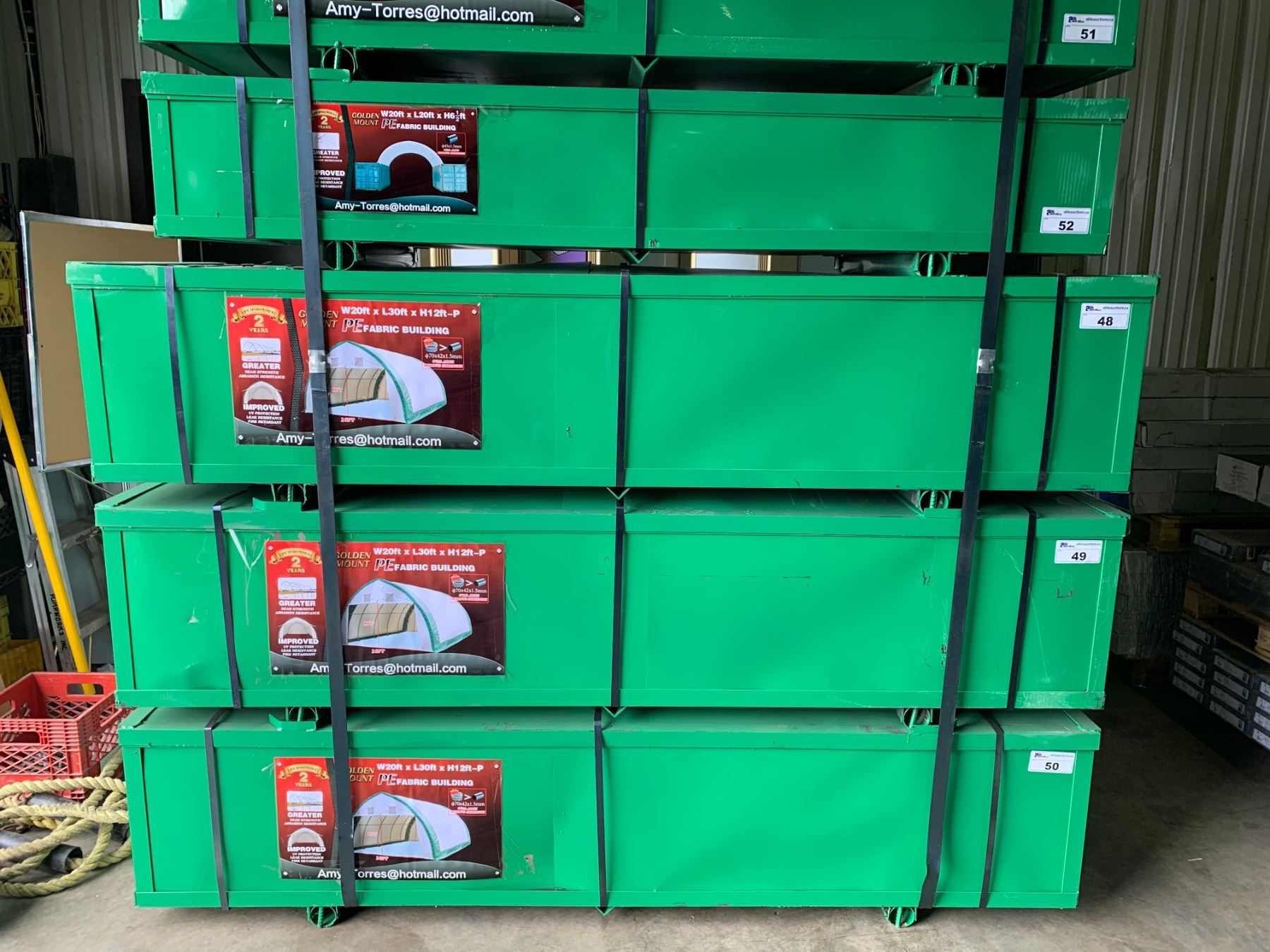 BRAND NEW GOLDEN MOUNT PEAK S203012P POINT ROOF STORAGE SHELTER 20'X30'X12' GW 360KG