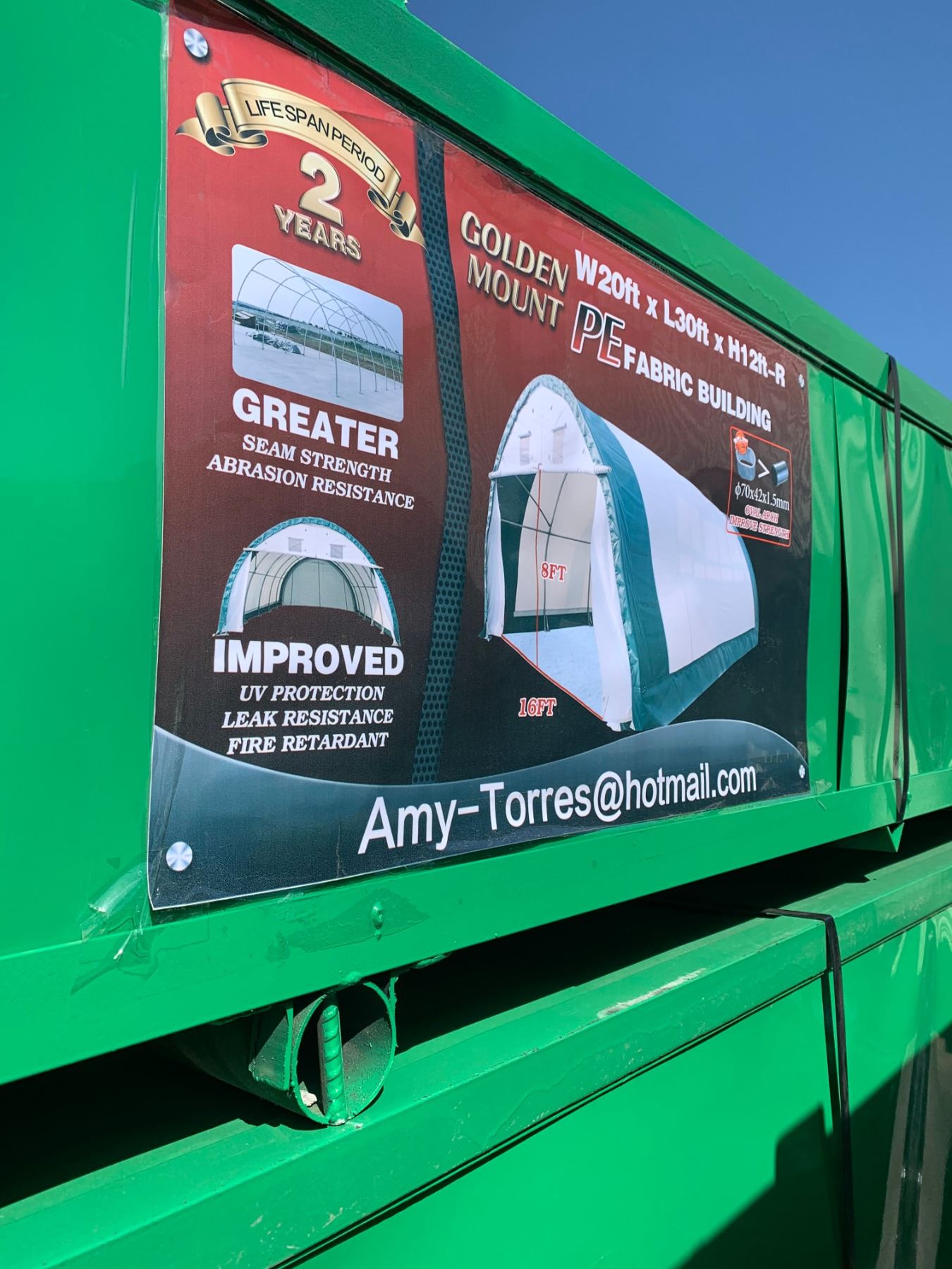 BRAND NEW GOLDEN MOUNT PEAK S203012R ROUND ROOF STORAGE SHELTER 20'X30'X12' GW 360KG
