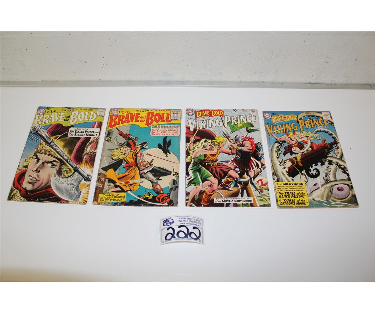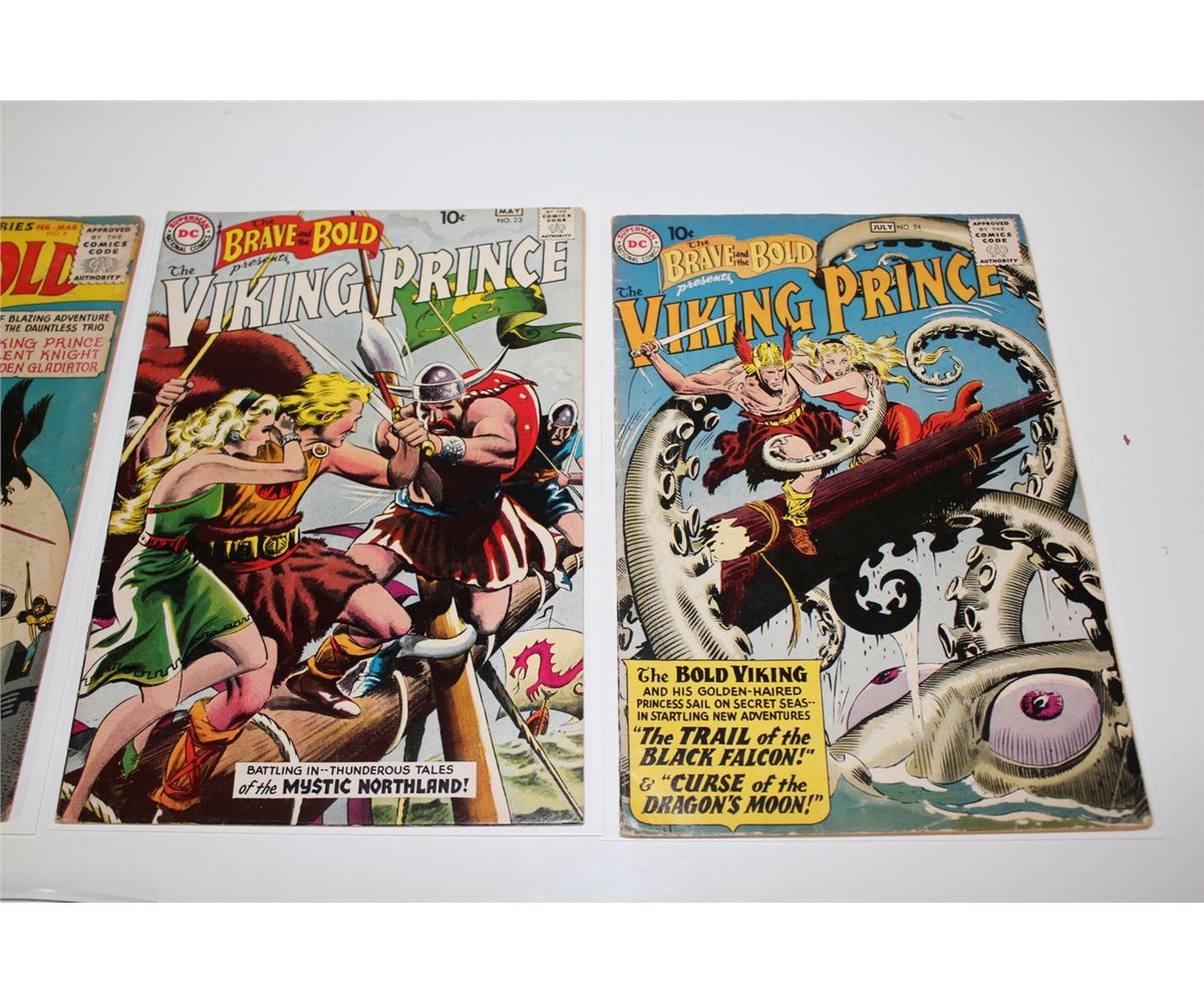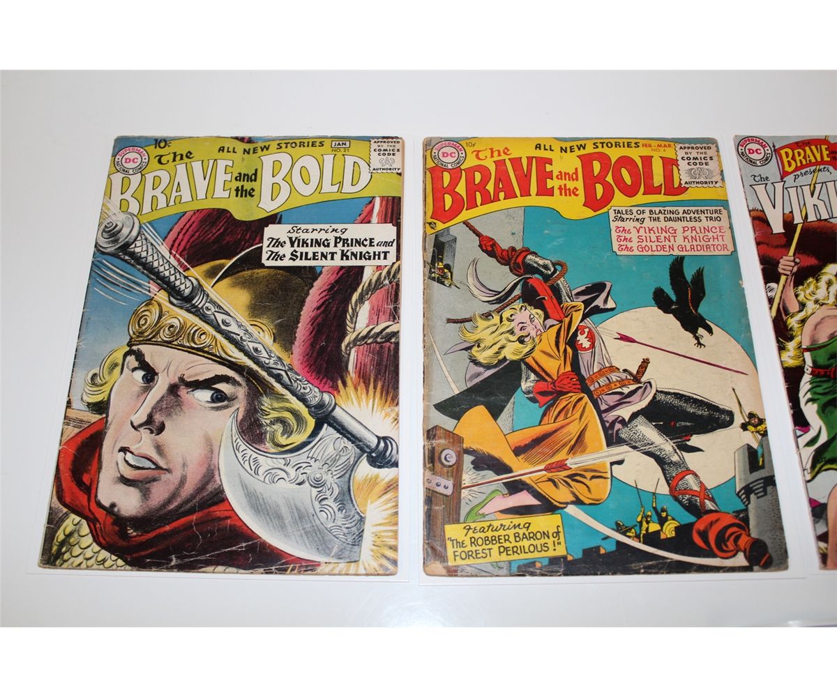 BRAVE AND THE BOLD #4, 21, 23 & 24 (1956-59) #23 - ORIGIN VIKING PRINCE. 4 EARLY SILVER AGE, VIKING PRINCE ISSUES BY KUBERT. LOW TO MID GRADE AVERAGE STRUCTURALLY SOUND, COVERS ATTACHED, PIECES OUT, COMPLETE. SOLID RUN.