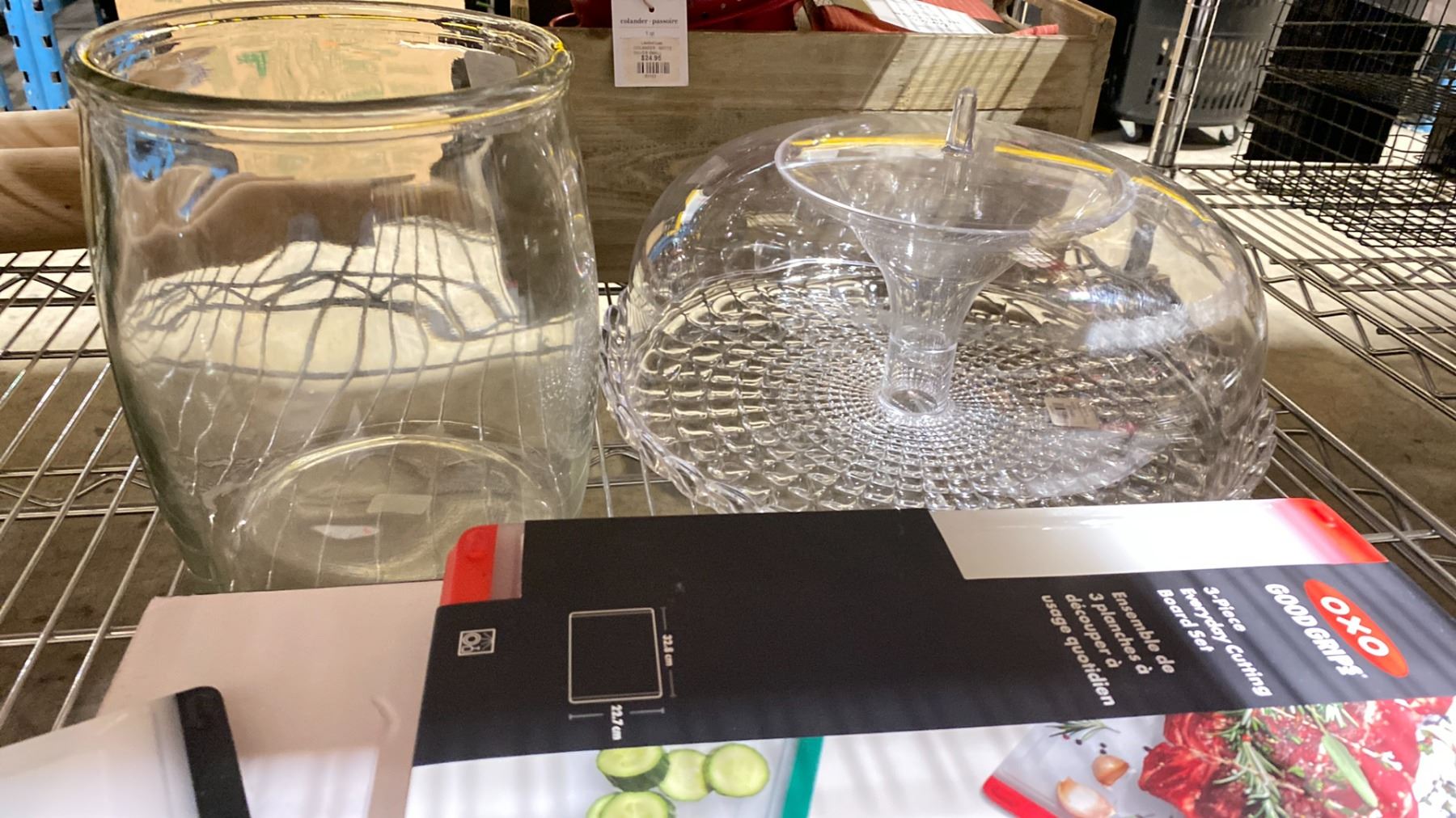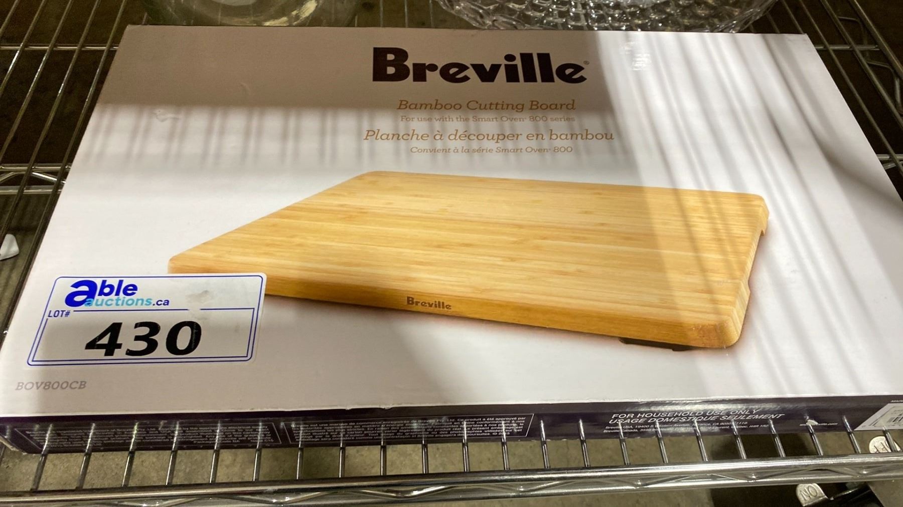 BREVILLE BAMBOO CUTTING BOARD, OXO PREP BOARD, OXO 3 PIECE CUTTING BOARD SET, LARGE GLASS VASE &
