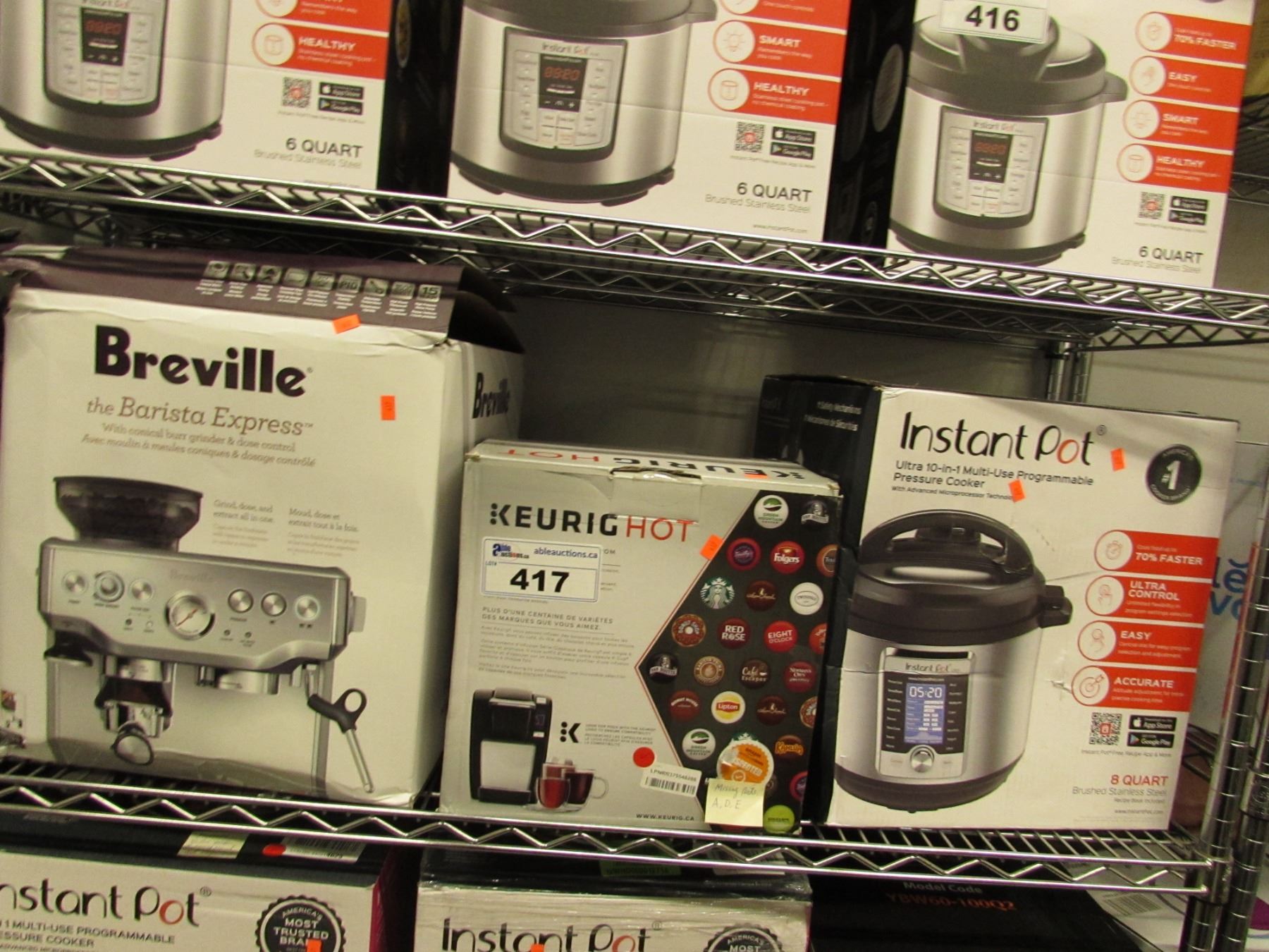 BREVILLE BARISTA EXPRESS MACHINE, KEURIG HOT MACHINE, INSTANT POT 10-IN-1 8 QUART MULTI USE PROGRAMMABLE PRESSURE COOKER (DAMAGES)