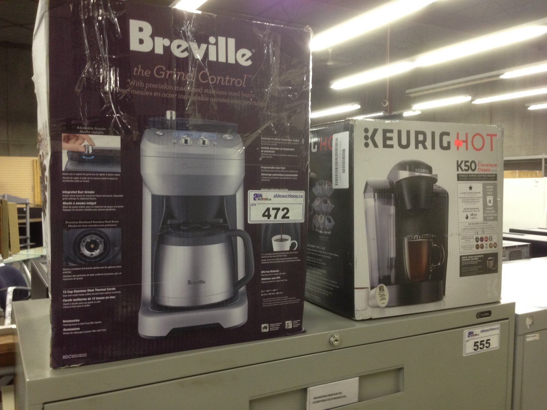 BREVILLE STAINLESS STEEL COFFEE MACHINE AND KEURIG K150 SINGLE SERVE COFFEE MAKER