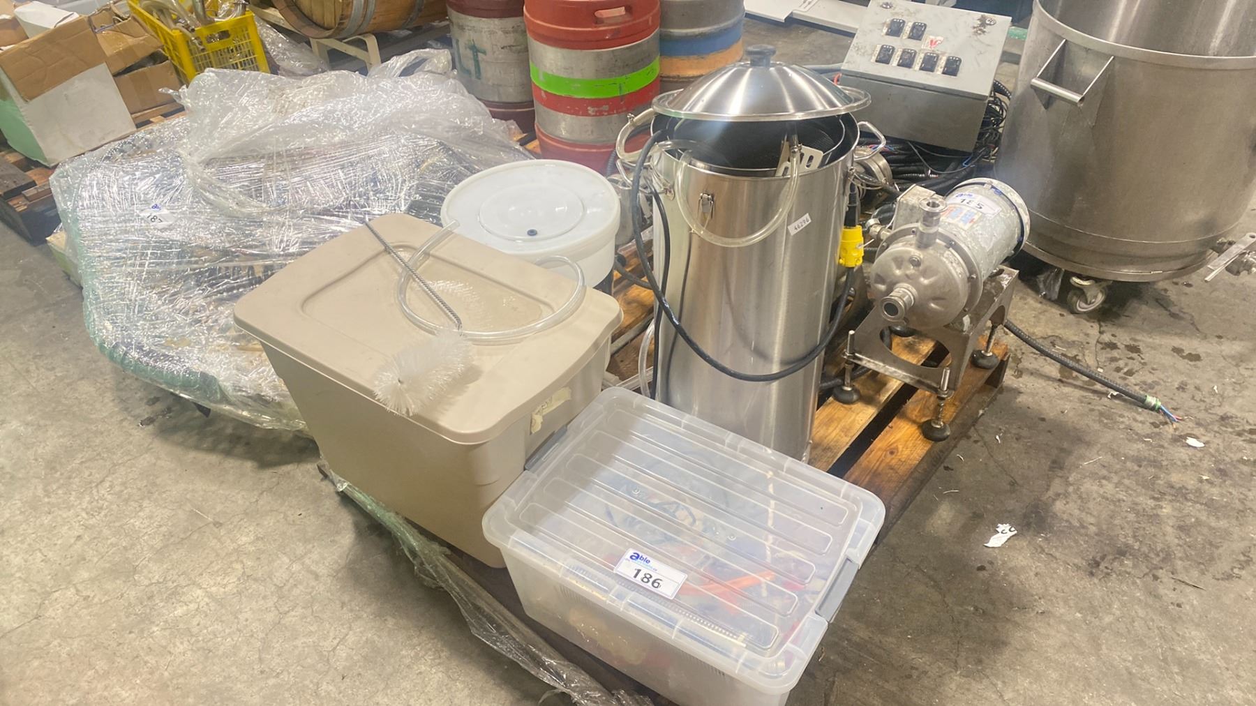BREWCRAFT STAINLESS STEEL ELECTRIC HOME MICRO BREW SYSTEM INCLUDING BREW TANK, PLASTIC FERMENTER & 2 PLASTIC BINS OF PARTS