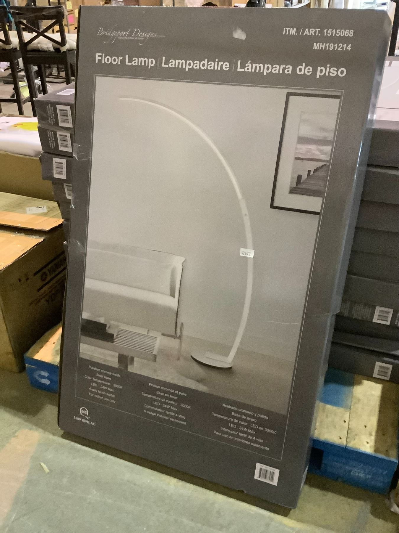BRIDGEPORT DESIGNS FLOOR LAMP POLISHED CHROME FINISH, STEEL BASE, 3000K COLOR TEMPERATURE, 4 WAY TOUCH SWITCH