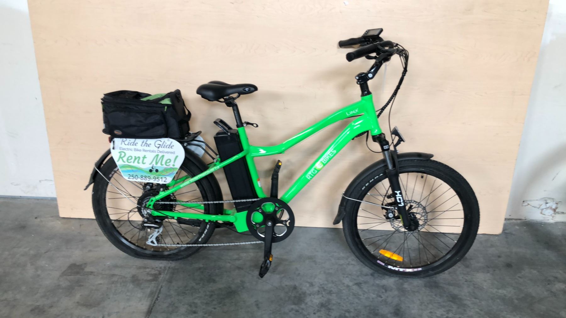 BRIGHT GREEN RTG LINX FRONT SUSPENSION 7-SPEED FORMER RENTAL ELECTRIC BIKE - NO CHARGER