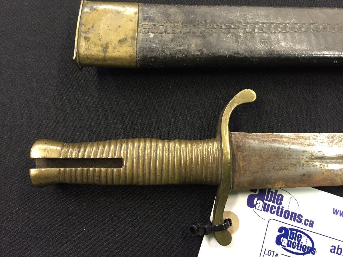 BRITISH 1848 SWORD BAYONET FOR BRUNSWICK RIFLE, LATCH MISSING WITH SCABBARD