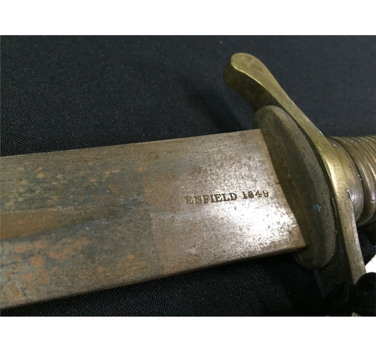 BRITISH 1848 SWORD BAYONET, FOR BRUNSWICK RIFLE MADE BY WILKINSON, REGIMENTAL MARKS, WITH BAYONET