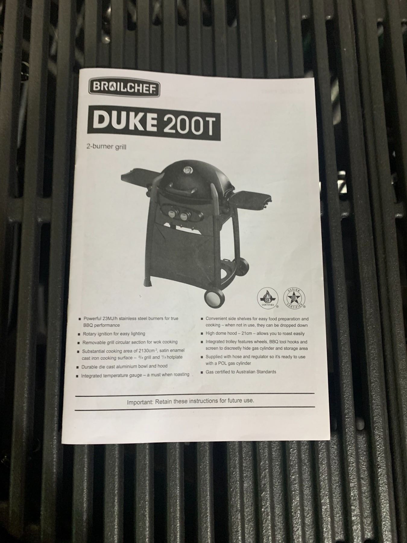 BROIL CHEF BLACK DUKE 200T 2 BURNER GAS GRILL