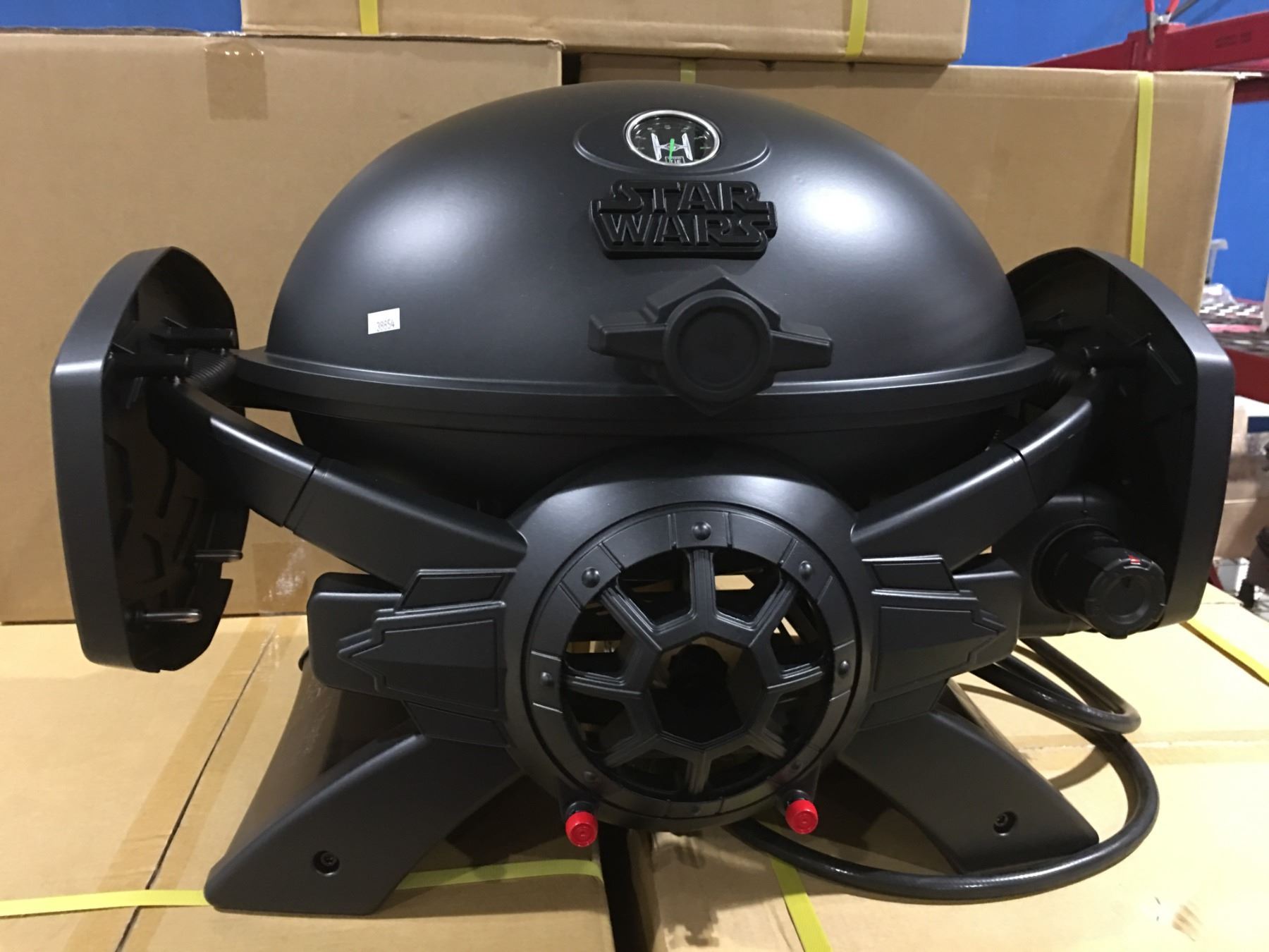 BROIL CHEF TIE FIGHTER PORTABLE GAS GRILL 10,000BTUS, CAST ALUMINUM TRI-DOME LID, THERMOSTAT, 220 SQ IN CAST IRON IMPERIAL COOLING GRID, CAST IRON X SUPPORT, CAST ALUMINUM GRILL BODY, CAST ALUMINUM 2-POSITION REMOVABLE SIDE SHELVES - COLLECTION CERTIFICATE INCLUDED - MSRP $498