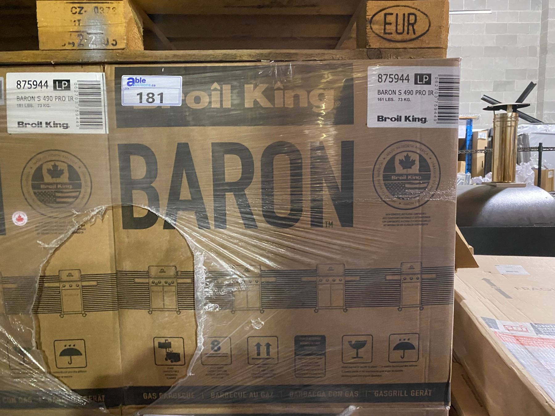 BROIL KING BARON S490 PRO IR LP PROPANE BBQ. 10,000 BTU INFRARED SIDE BURNER, 15,000 BTU ROTISSERIE BURNER, 40,000 BTU DUAL TUBE STAINLESS STEEL BURNERS, BUILT IN CONTROL PANELS LIGHTS, DELUXE ACCU-TEMP THERMOMETERS, HEAVY DUTY LOCKING SWIVEL CASTORS, SOLID 8 MM SS COOKING GRIDS, SS DUAL-TUBE BURNER SYSTEM, SURE-LITE ELECTRONIC IGNITION SYSTEM, THERMA-CAST ALUMINUM COOK BOX. NEW IN BOX NOT ASSEMBLED