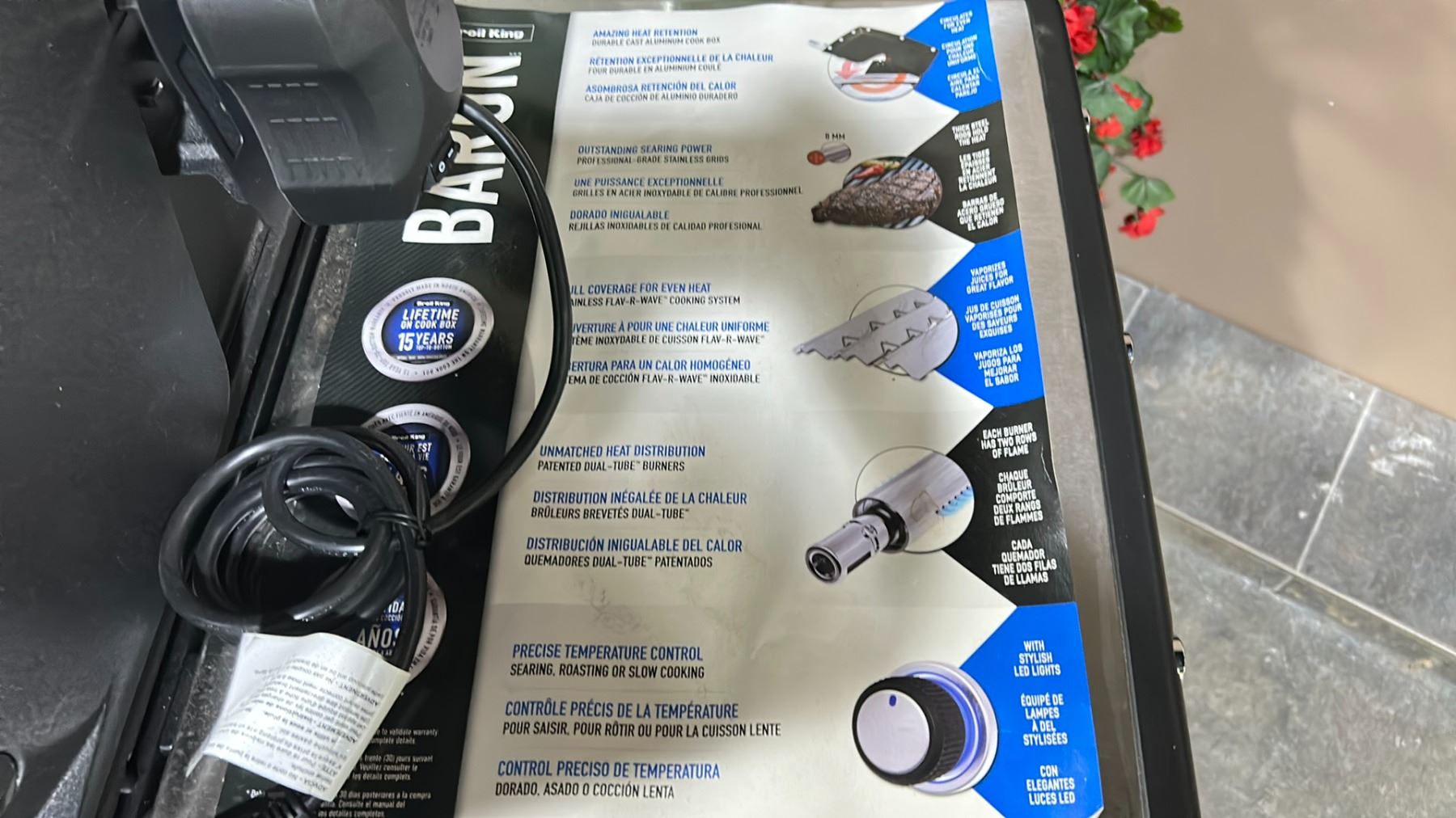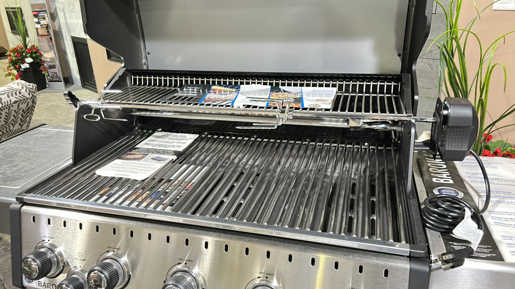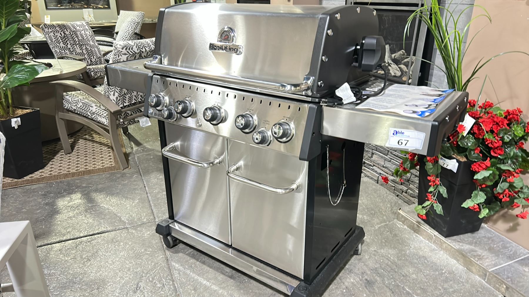 BROIL KING BARON S590 PRO IR NATURAL GAS BBQ. ALL STAINLESS STEEL TUBE BURNERS, 45,000 BTU MAIN BURNER 10,000 BTU SIDE BURNER PRIMARY COOKING AREA 570 SQ INCH, 8 MM COOKING GRILLS, STAINLESS STEEL FLAV-R-WAVE. WITH ROTISSERIE. OVERALL WIDTH 64"