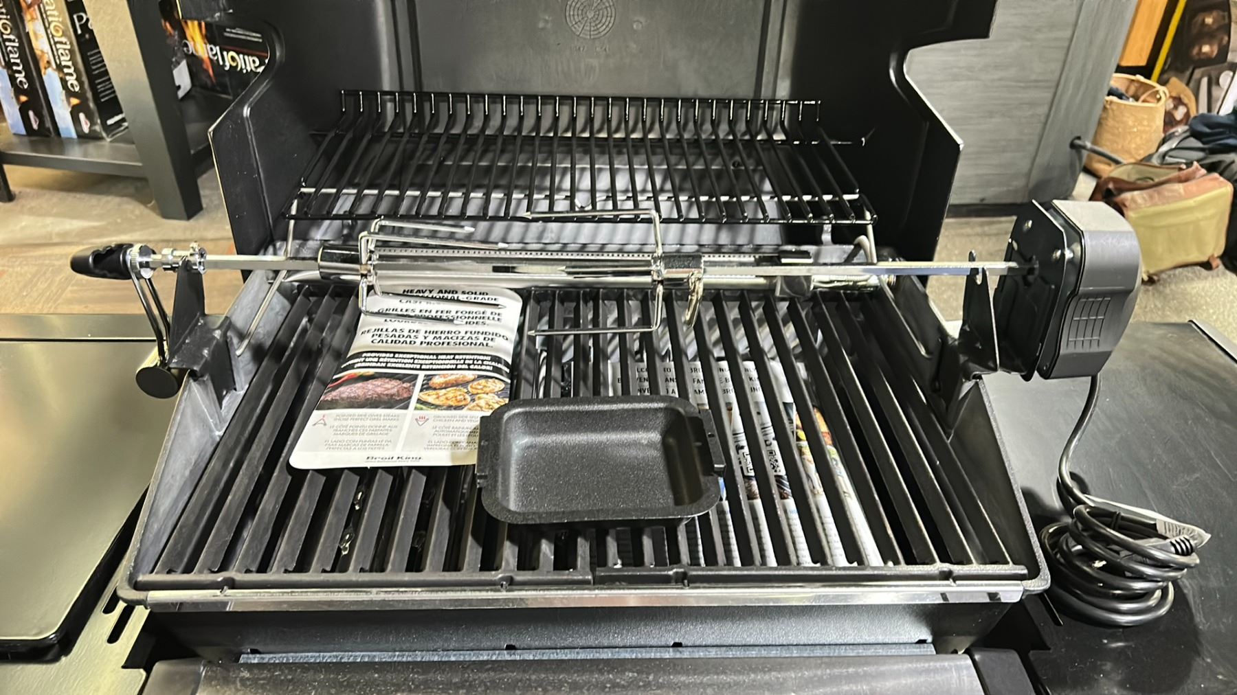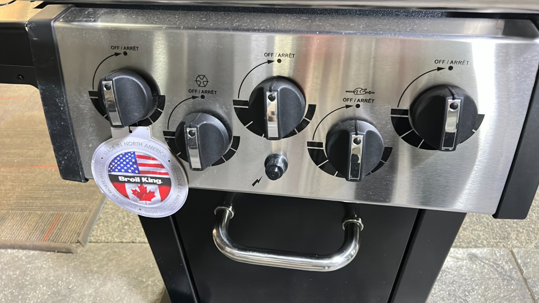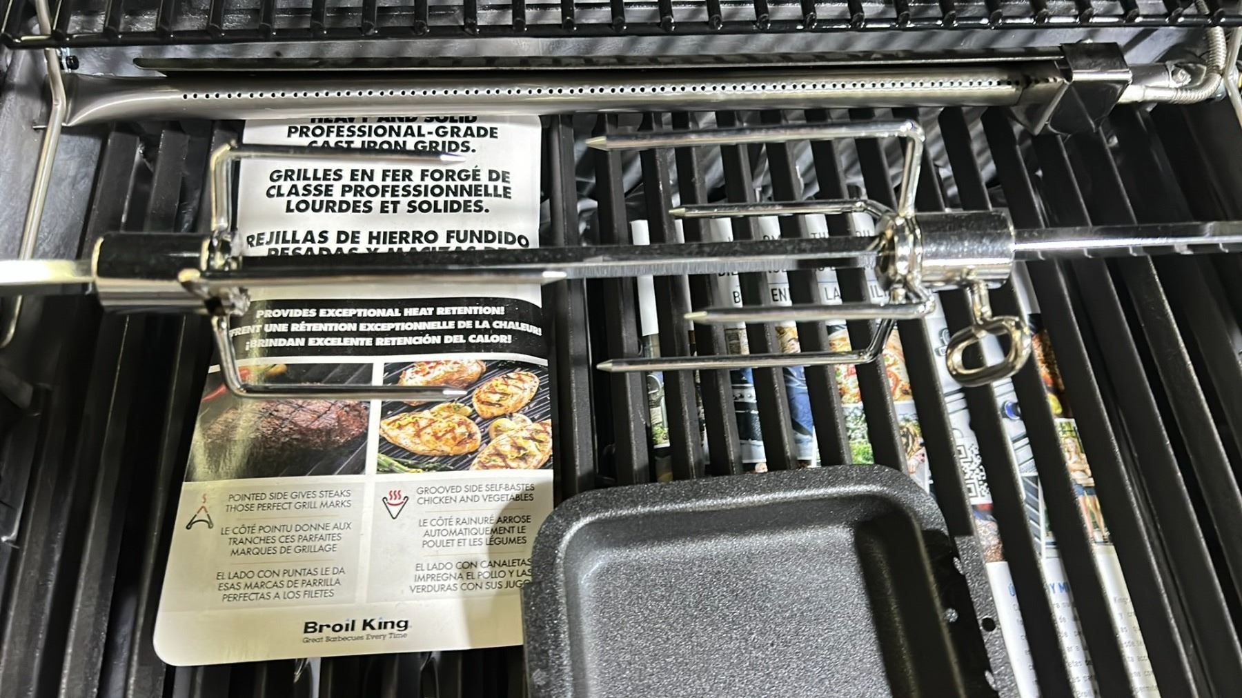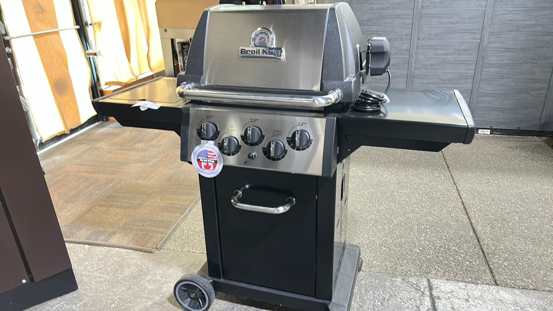 BROIL KING MONARCH 390 NATURAL GAS BBQ. STAINLESS STEEL DUAL TUBE BURNER, 520 SQ IN TOTAL COOKING AREA, 30,000 BTU MAIN BURNER, 12,000 BTU REAR BURNER, 10,000 BTU SIDE BURNER, PORCELAIN COATED CAST IRON COOKING GRIDS, WITH ROTISSERIE. OVERALL WIDTH 53"