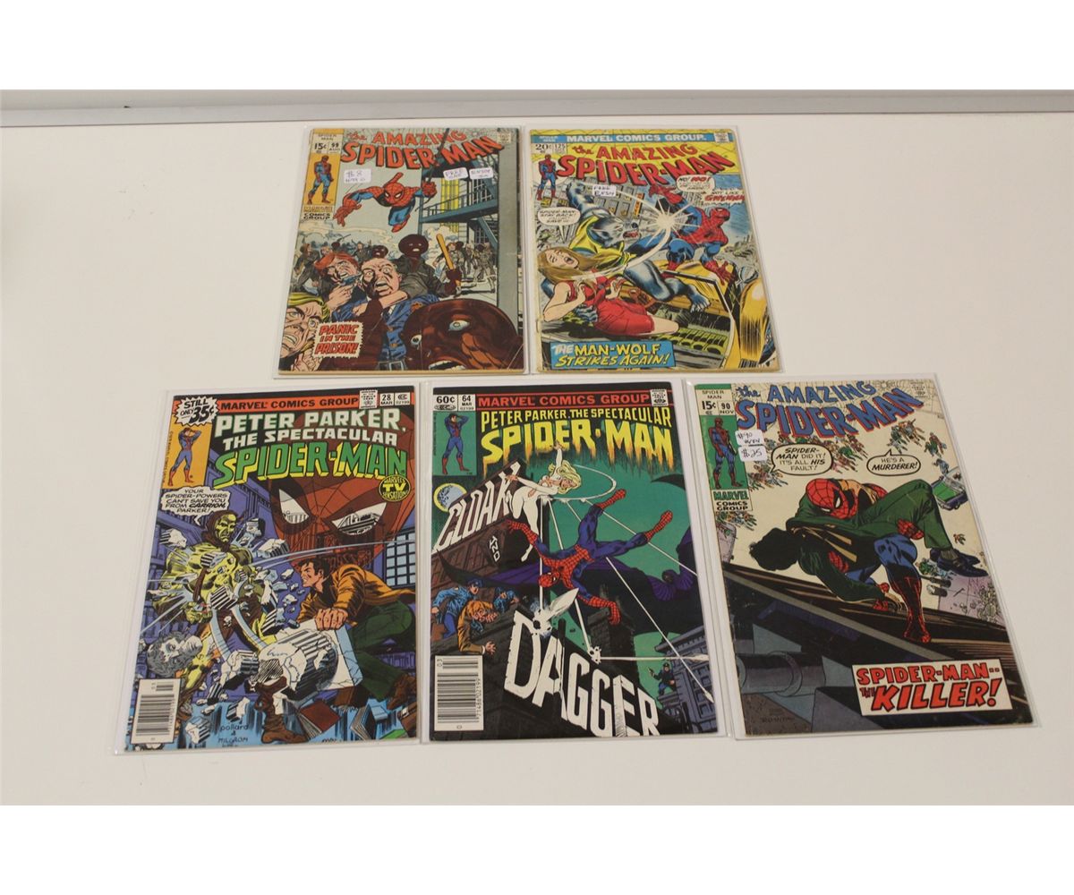 BRONZE AGE AMAZING SPIDERMAN (#90,99 & 125) PETER PARKER # 2 & 64 MIXED GRADES FIVE BOOKS TOTAL