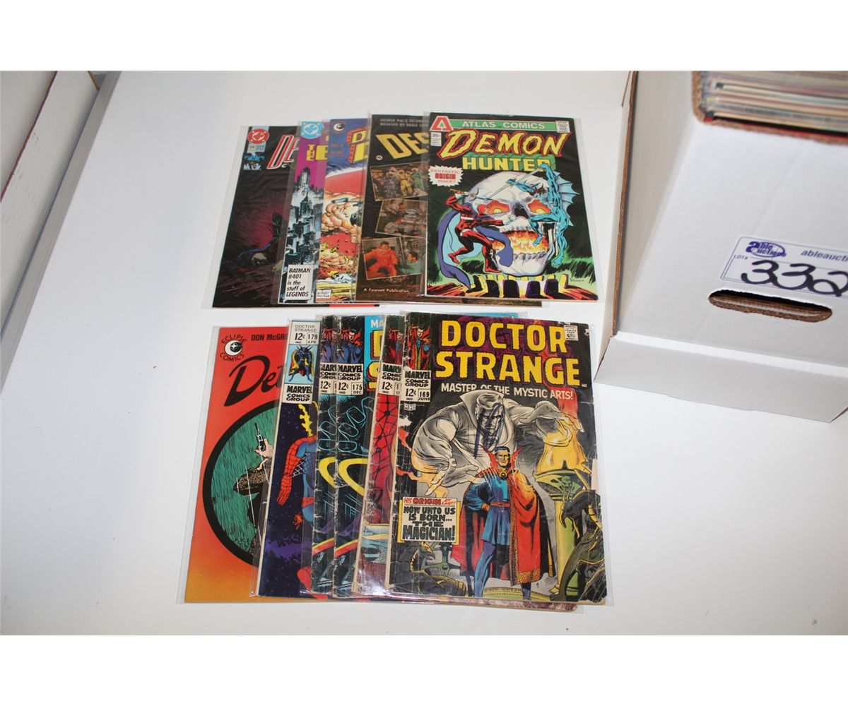 BRONZE AGE COMICS MIX SHORT BOX OF RUNS & TITLES (MAY INCLUDE SOME SILVER & COPPER) D-F: INCLUDES - DOCTOR STRANGE, EC REPRINTS, ETC. MIXED GRADES WITH LOTS OF HIGHER GRADE COPIES.
