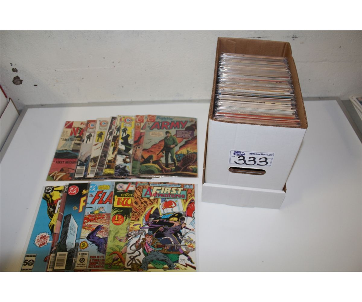 BRONZE AGE COMICS MIX SHORT BOX OF RUNS & TITLES (MAY INCLUDE SOME SILVER & COPPER) F-K: INCLUDES - GREEN ARROW, FLASH, ETC. MIXED GRADES WITH LOTS OF HIGHER GRADE COPIES.