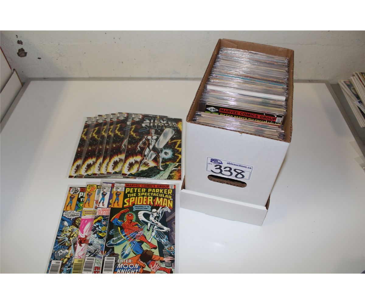 BRONZE AGE COMICS MIX SHORT BOX OF RUNS & TITLES (MAY INCLUDE SOME SILVER & COPPER) S: INCLUDES - SILVER SURFER, SPECTACULAR SPIDER-MAN, STAR WARS, ETC. MIXED GRADES WITH LOTS OF HIGHER GRADE COPIES.