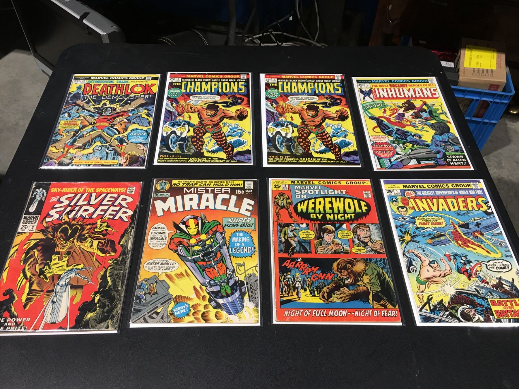 BRONZE AGE KEYS & # 1'S LOT OF 8 (1970'S) INCLUDES ASTONISHING TALES # 25 (1ST APP DEATHLOK) CHAMPIONS #1 X 2COPIES, INHUMANS #1, INVADERS #1, MARVEL SPOTLIGHT #2 (1ST APP WEREWOLF BY NIGHT) MISTER MIRACLE #1 (1ST APP MR. MIRACLE) & SLIVER SURFER #3 (1ST APP MEPHISTO. LOW TO MID