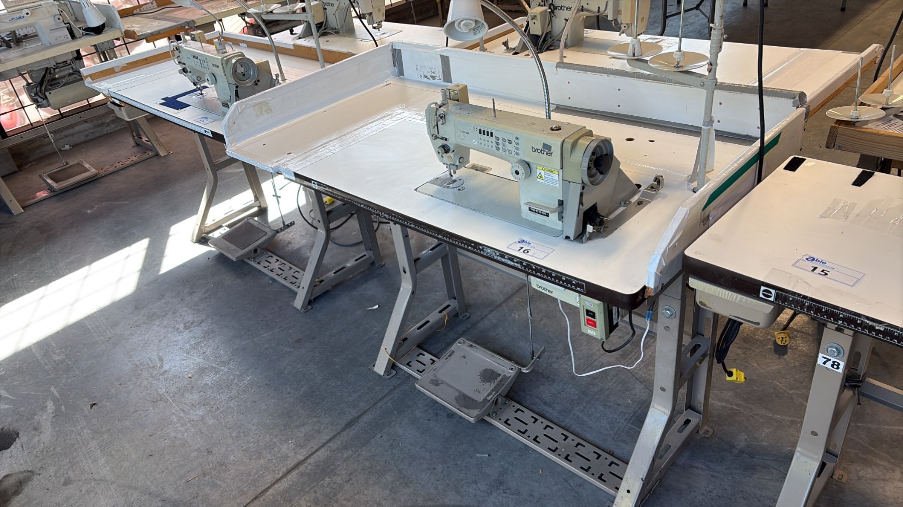 BROTHER DB2-B722-405 INDUSTRIAL, SINGLE-NEEDLE LOCKSTITCH SEWING STATION WITH NEEDLE FEED TRANSPORT