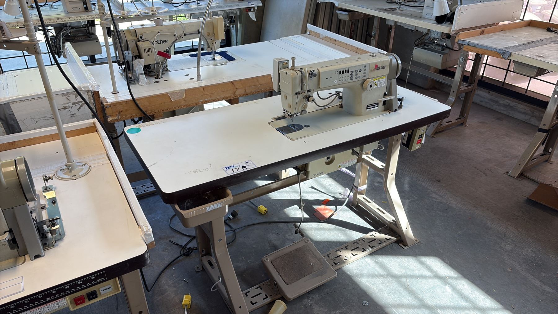 BROTHER DB2-B722-405 INDUSTRIAL, SINGLE-NEEDLE LOCKSTITCH SEWING STATION WITH NEEDLE FEED TRANSPORT TRAN