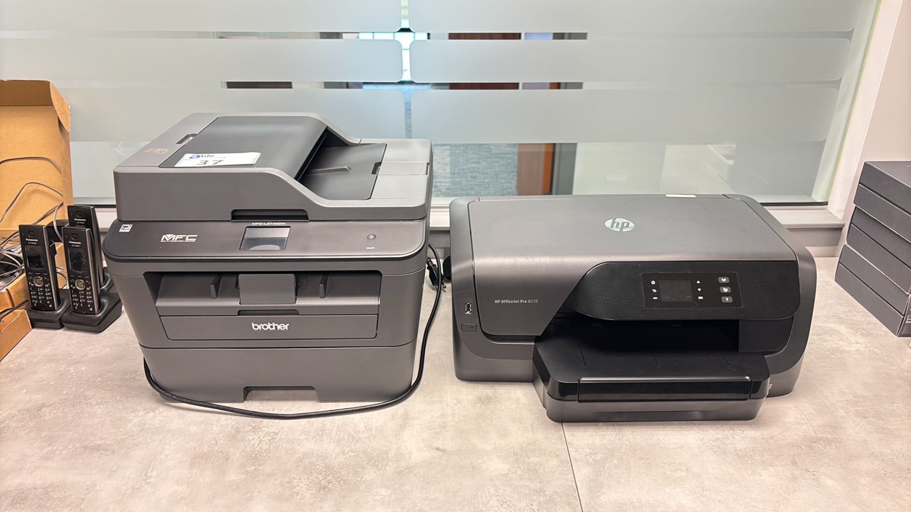 BROTHER MFC-L27400W MONOCHROME MULTI FUNCTION PRINTER WITH POWER CORD & A HP OFFICEJET PRO 8210 WIRELESS COLOR PRINTER *NO POWER CORD*