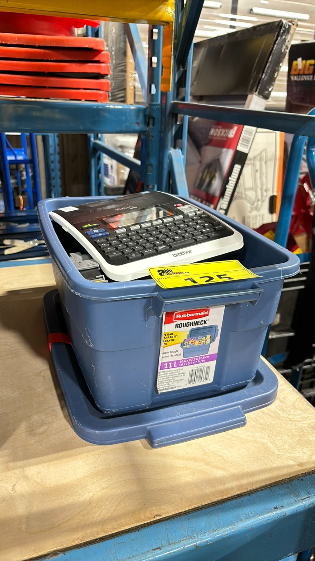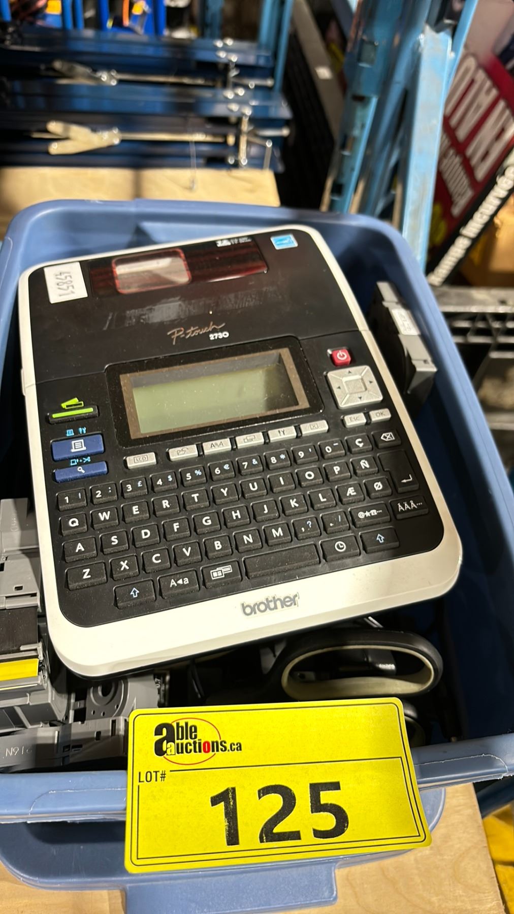 BROTHER P-TOUCH 2730 PORTABLE LABEL PRINTER WITH RUBBERMAID BIN OF ASSORTED INK CARTRIDGES *BIN / LID INCLUDED*