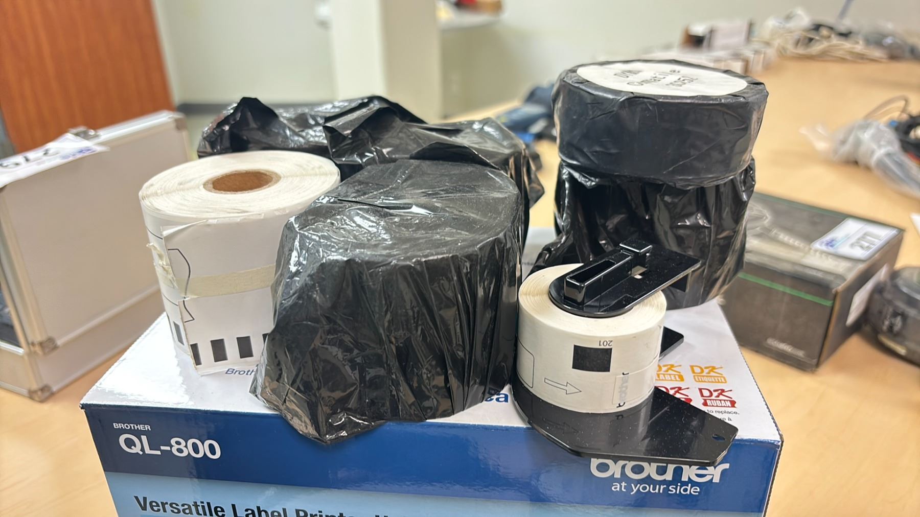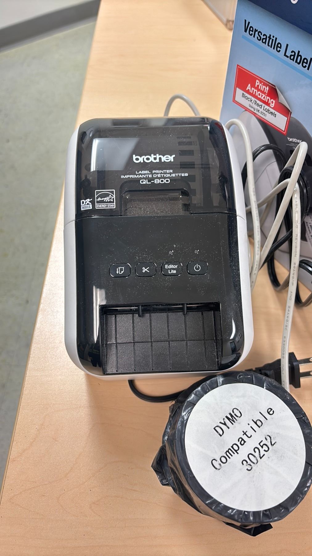 BROTHER QL-800 LABEL PRINTER WITH POWER CORDS & ASSORTED LABELS