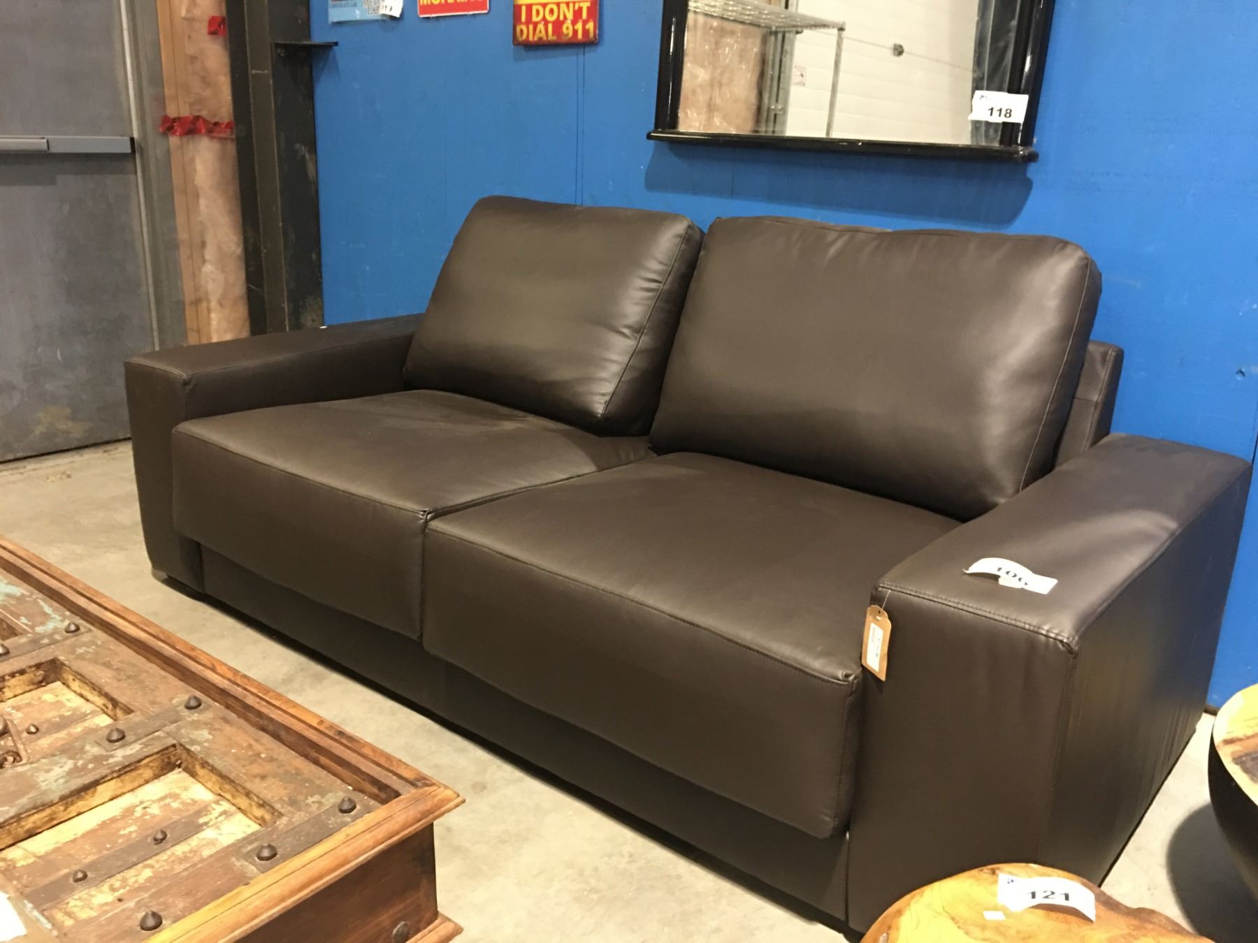 BROWN 2-CUSHION LOVE SEAT (APPROX 85" WIDE) SYNTHETIC LEATHER - MSRP $1755