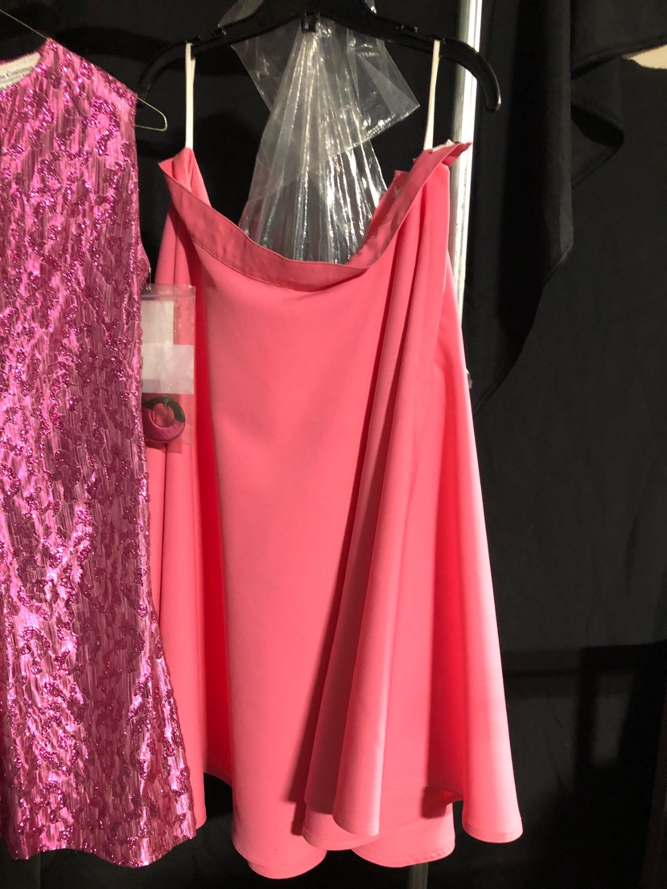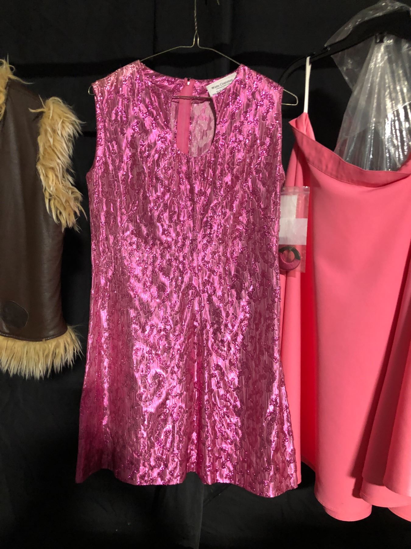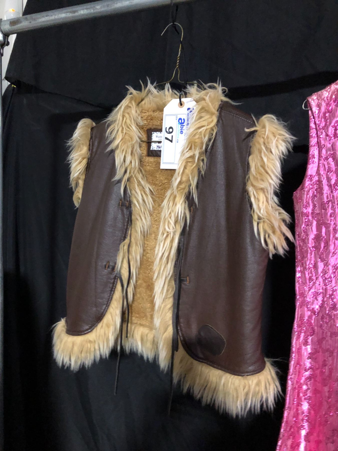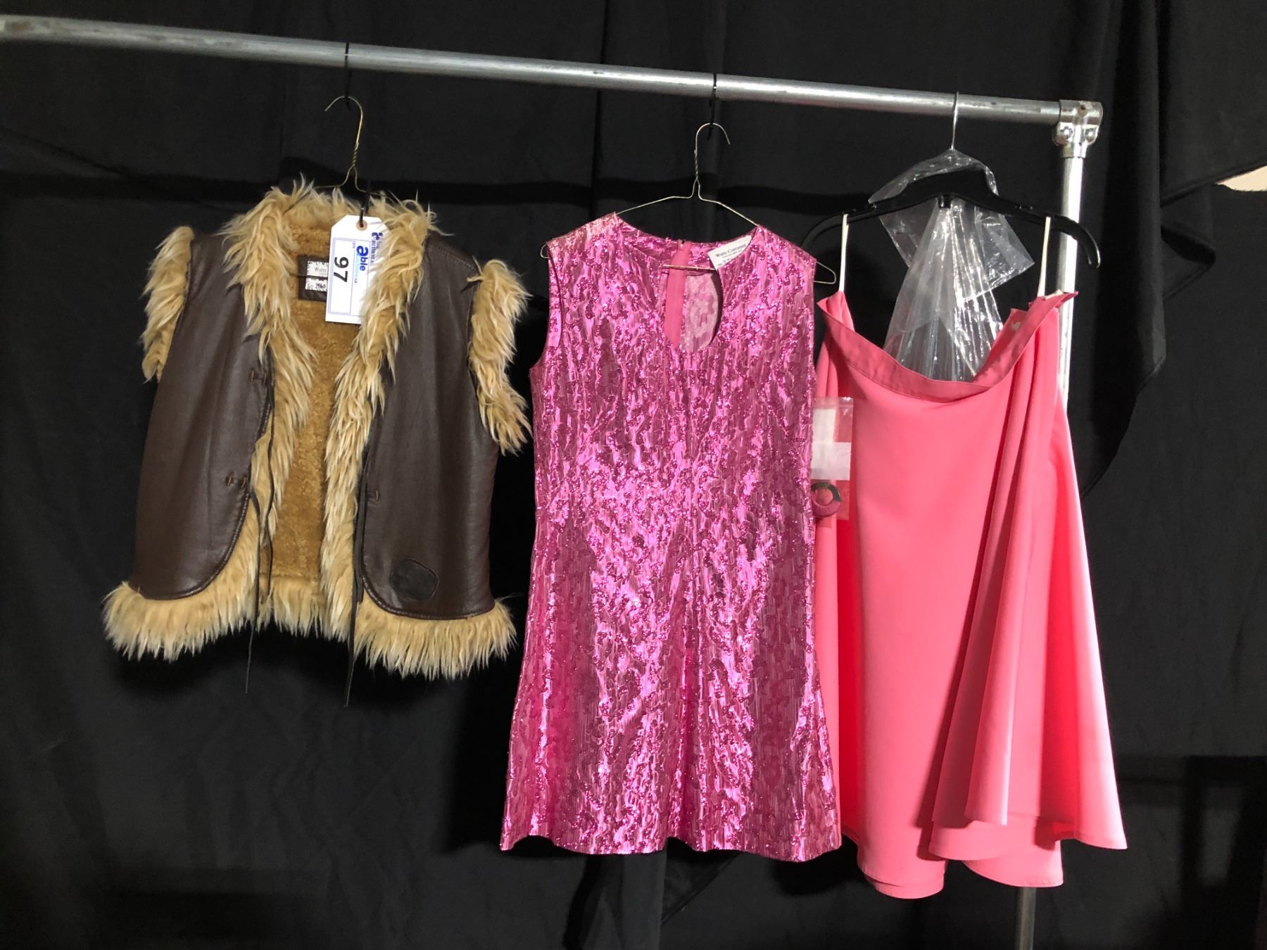 BROWN FAUX LINED VEST, 2 PINK DRESSES, DAILY RENTAL $75.00