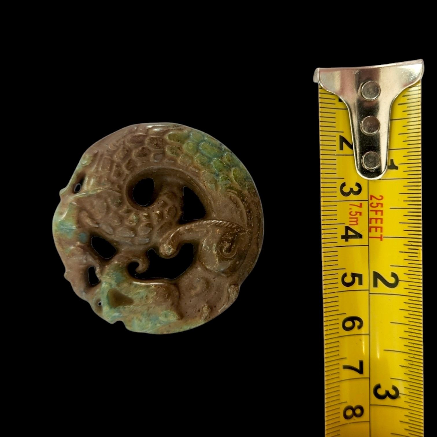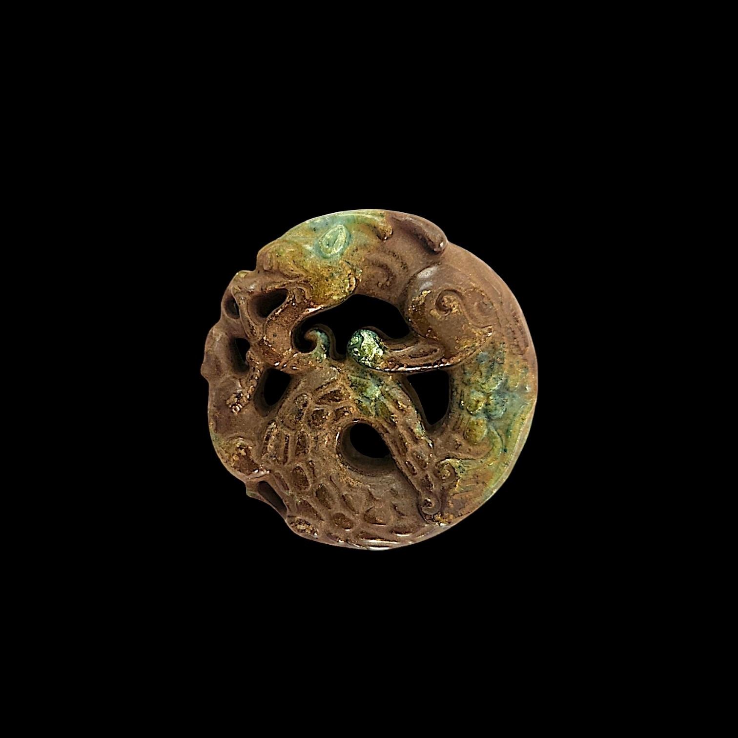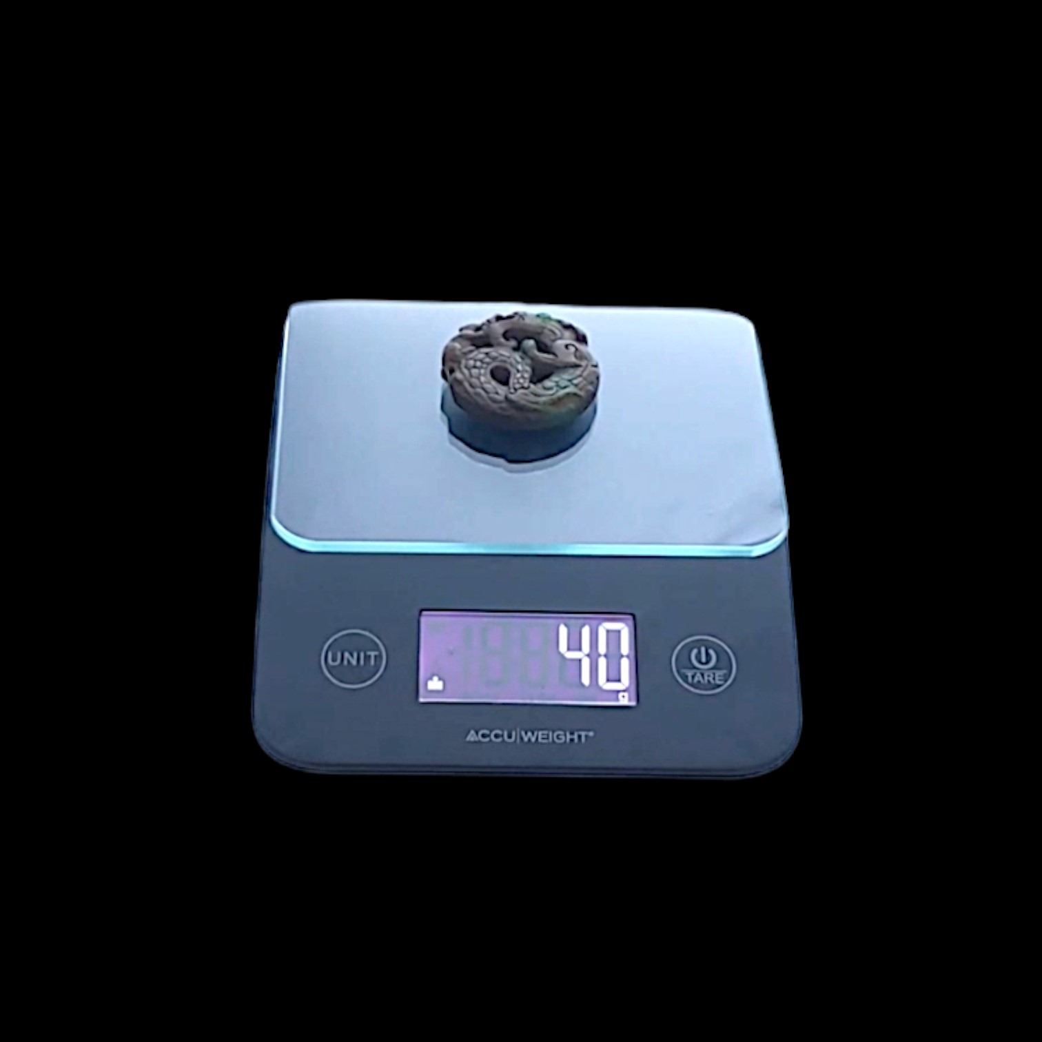 BROWN GREEN ROUND DRAGON CARVING PENDANT FETISH
