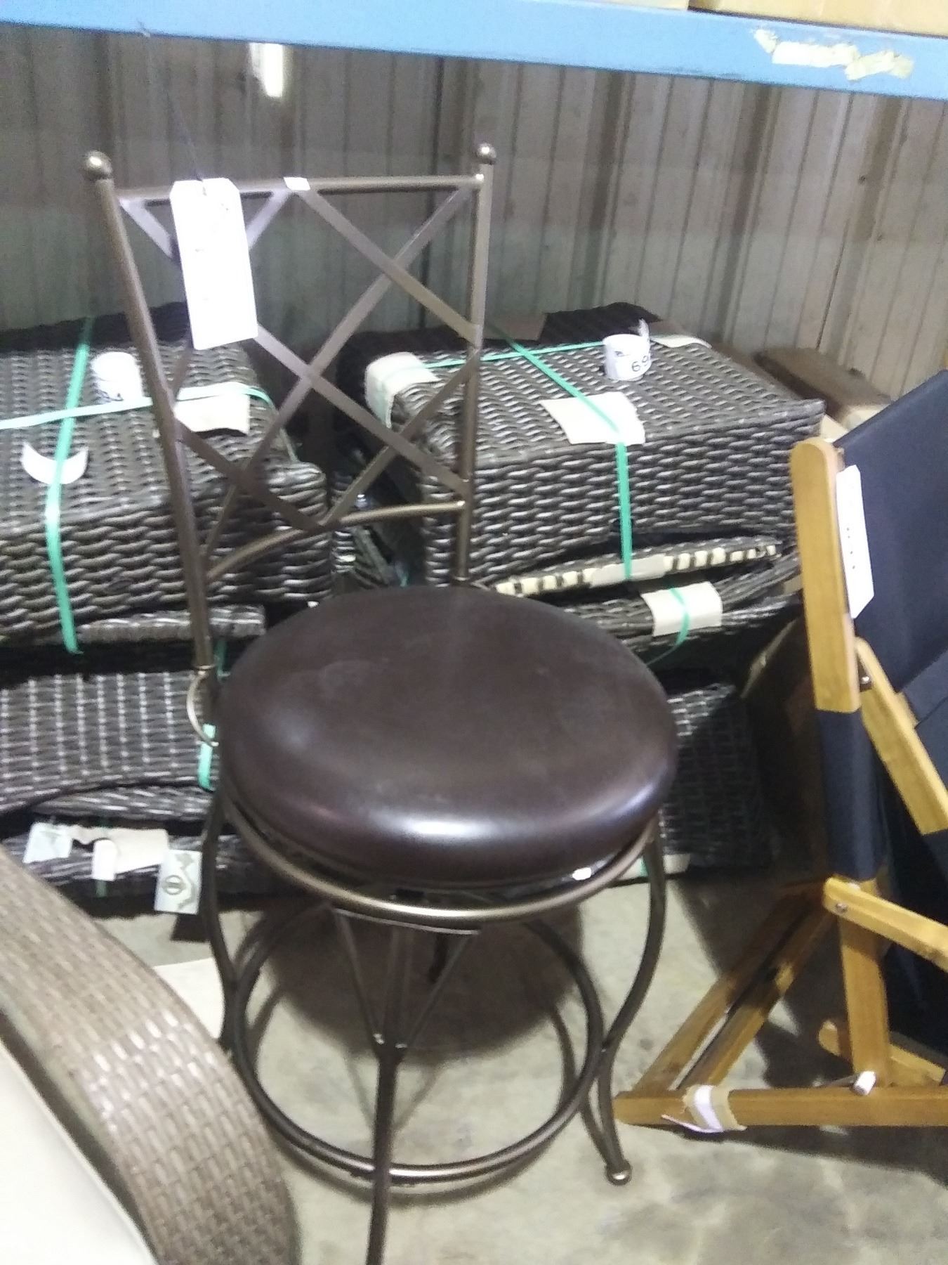 BROWN LEATHER AND METAL HIGH BACK BAR STOOL