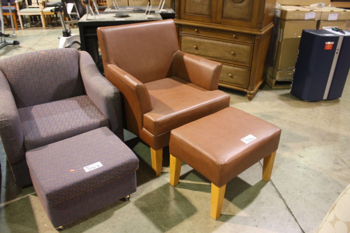 BROWN LEATHER ARMCHAIR WITH OTTOMAN