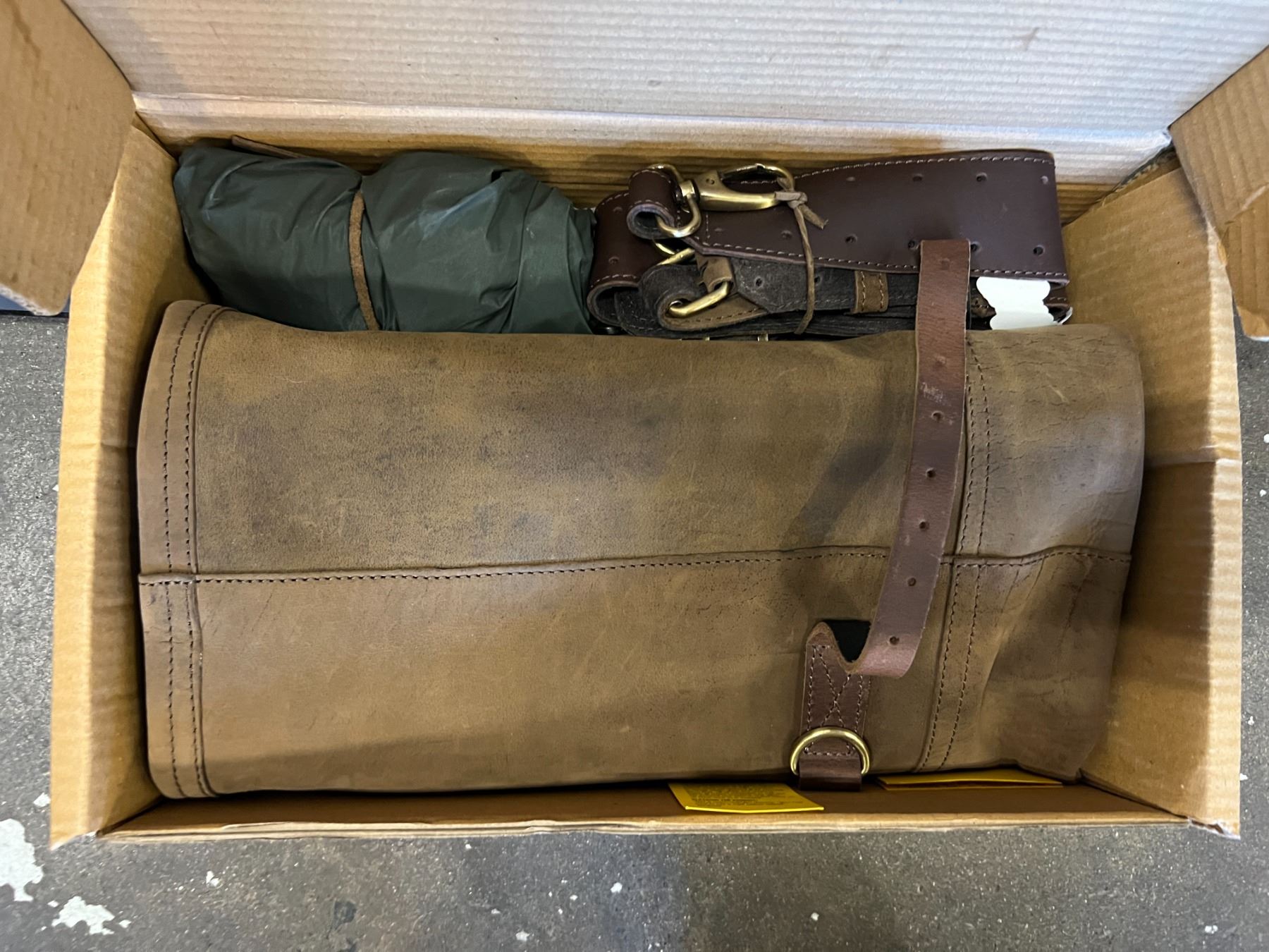 BROWN LEATHER DUFFLE BAG 22"H X 9.5"L