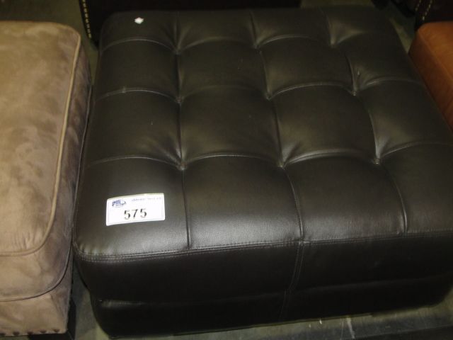 BROWN LEATHER FOOTSTOOL OTTOMAN