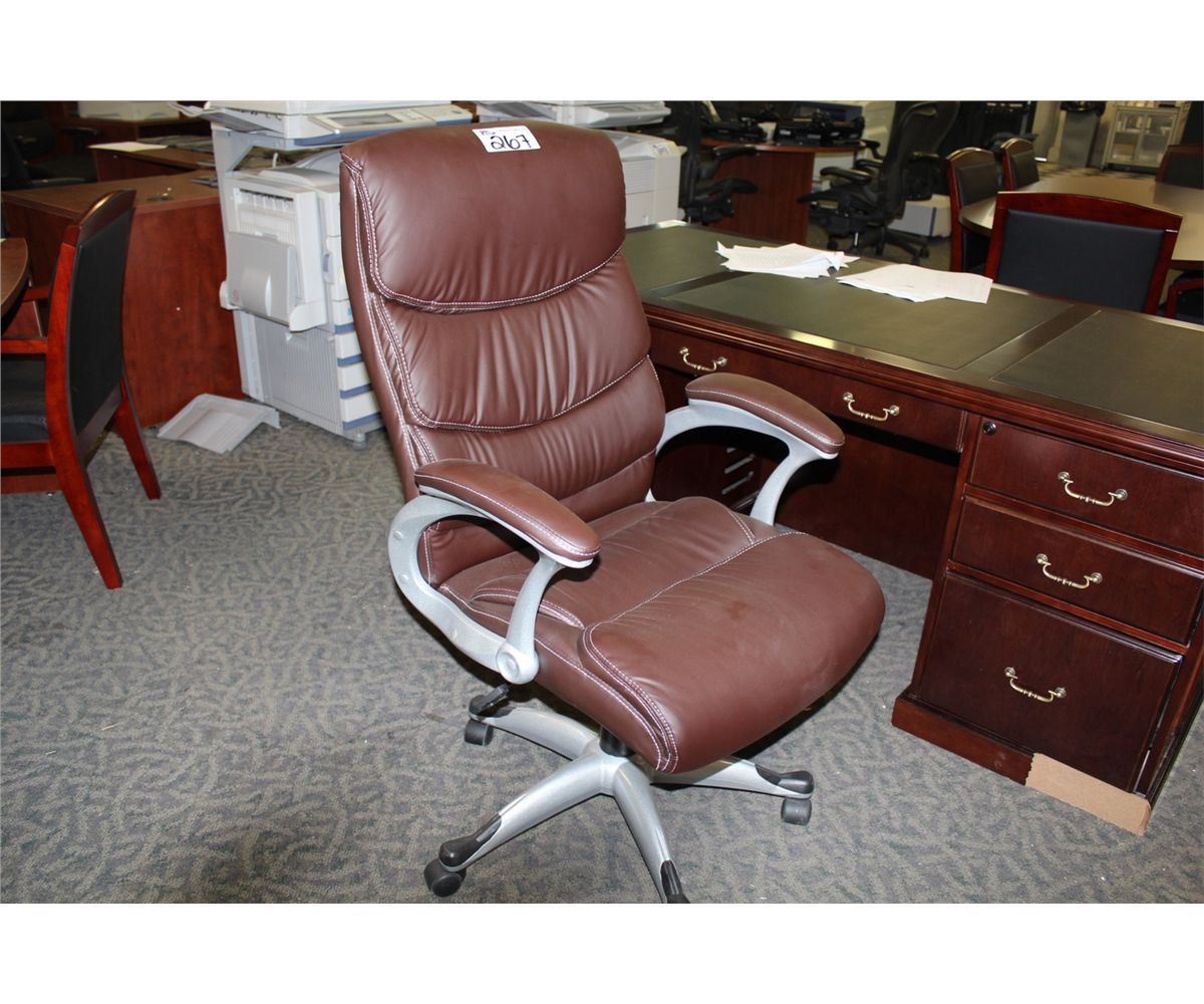 BROWN LEATHER HI BACK EXECUTIVE CHAIR (13)