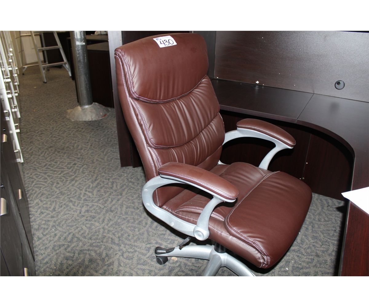 BROWN LEATHER HI BACK EXECUTIVE CHAIR (13)