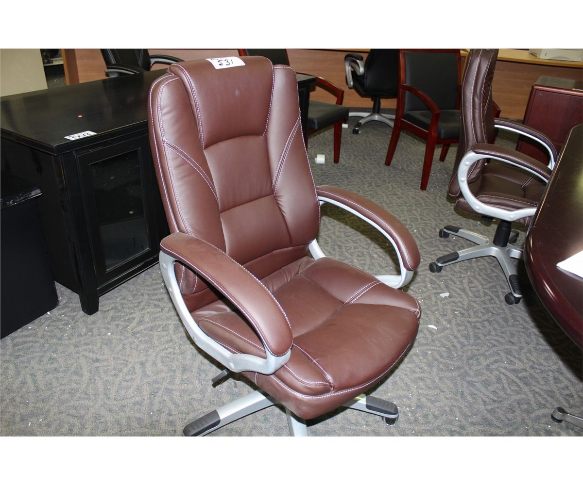 BROWN LEATHER HI BACK EXECUTIVE CHAIR (68)