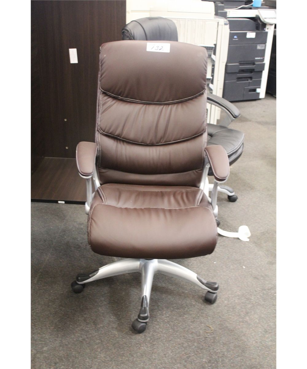 BROWN LEATHER HIGH BACK EXECUTIVE CHAIR (58)