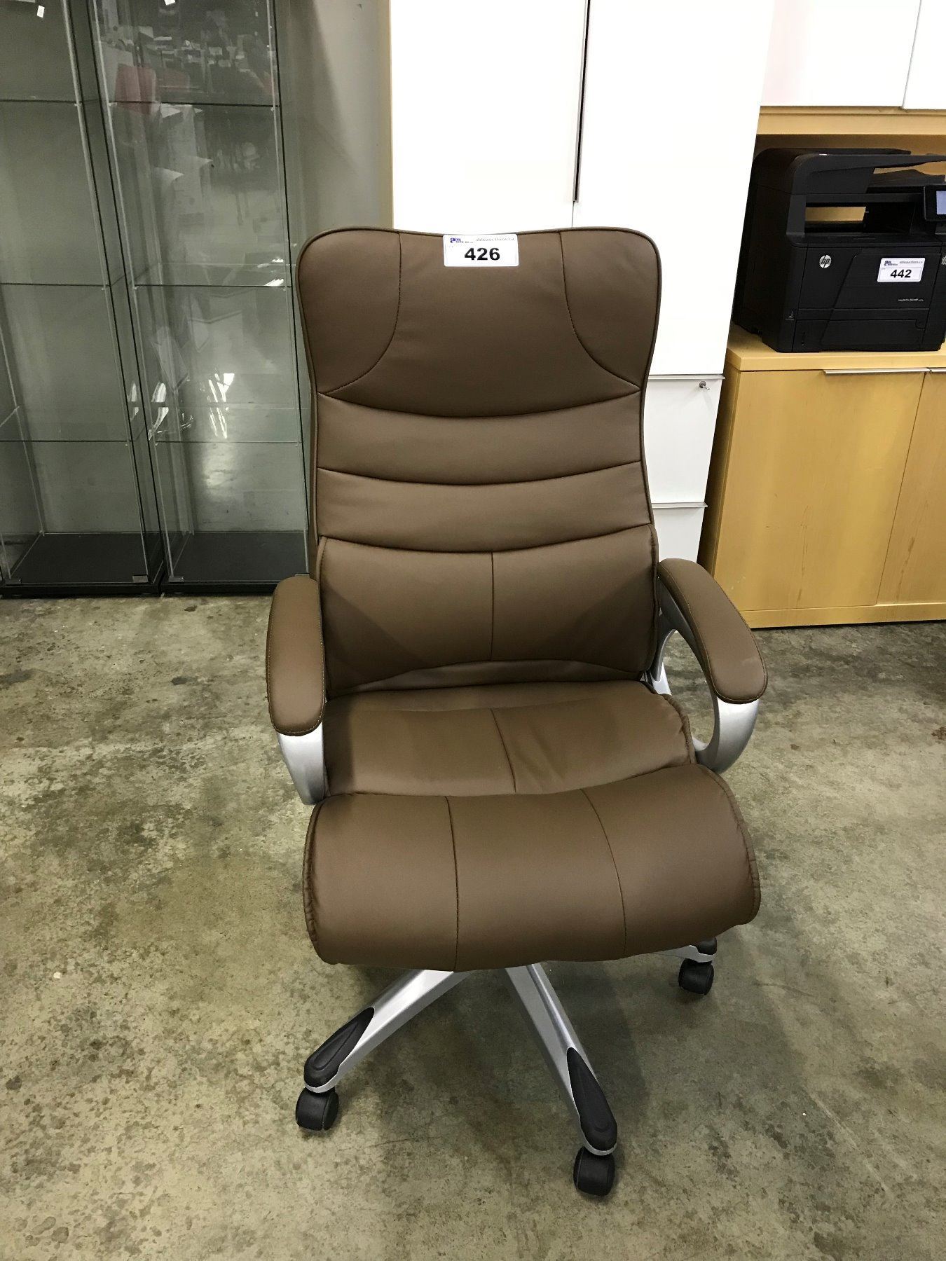 BROWN LEATHER HIGH BACK EXECUTIVE CHAIR