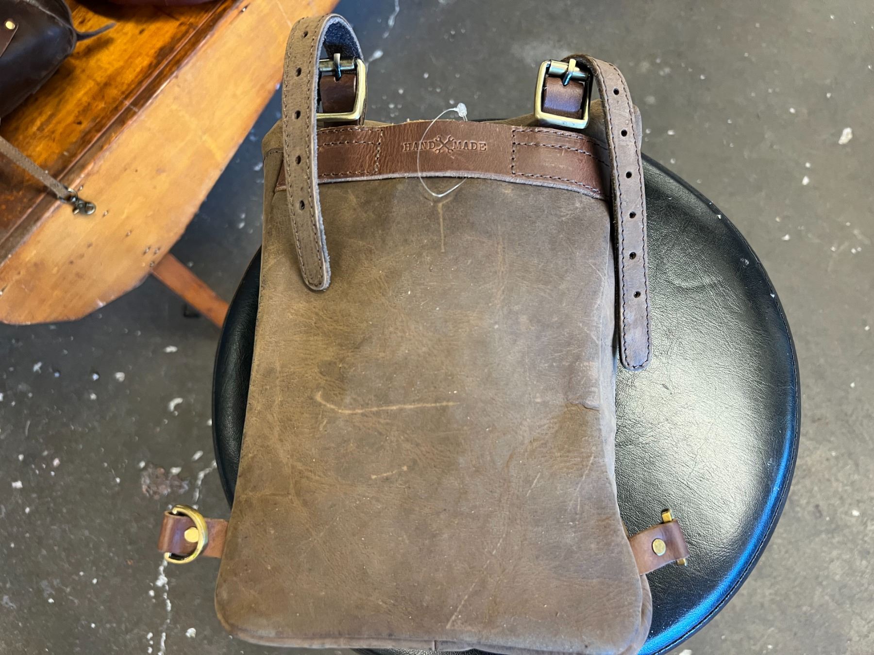 BROWN LEATHER MINI PANNIER (ATTACHABLE TO BACK PACK) 11"H X 4"W X 7.5"