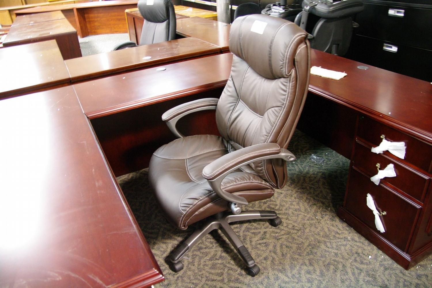 BROWN LEATHER OVERSTUFFED EXECUTIVE CHAIR
