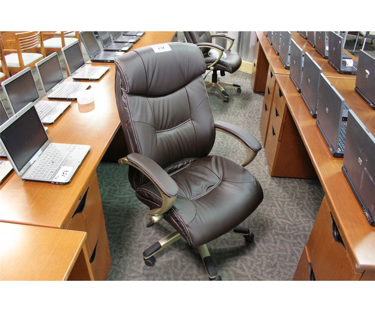 BROWN LEATHER OVERSTUFFED EXECUTIVE CHAIR