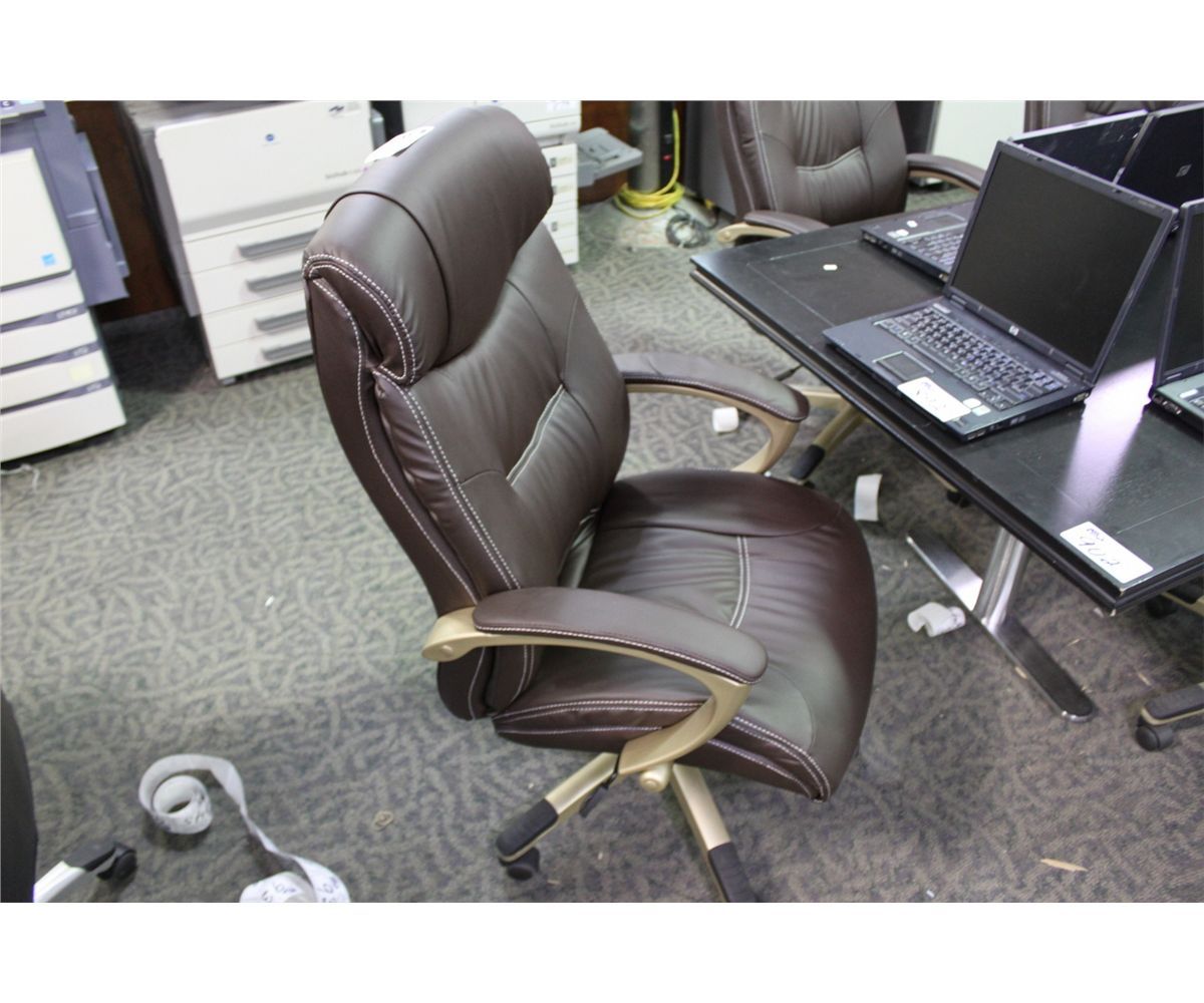 BROWN LEATHER OVERSTUFFED EXECUTIVE CHAIR
