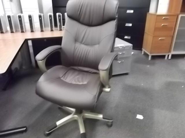 BROWN LEATHER OVERSTUFFED HIGH BACK EXECUTIVE