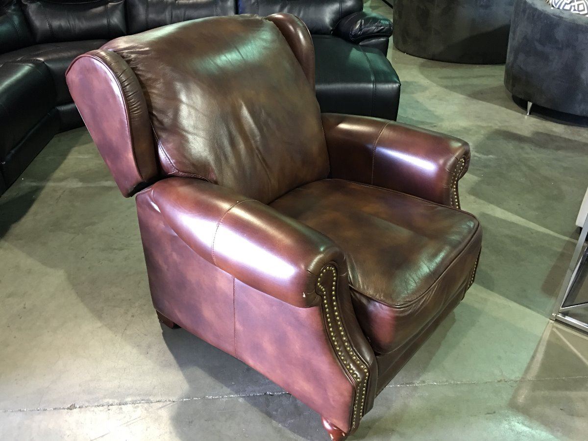 BROWN LEATHER & STUDDED LIVING ROOM RECLINER
