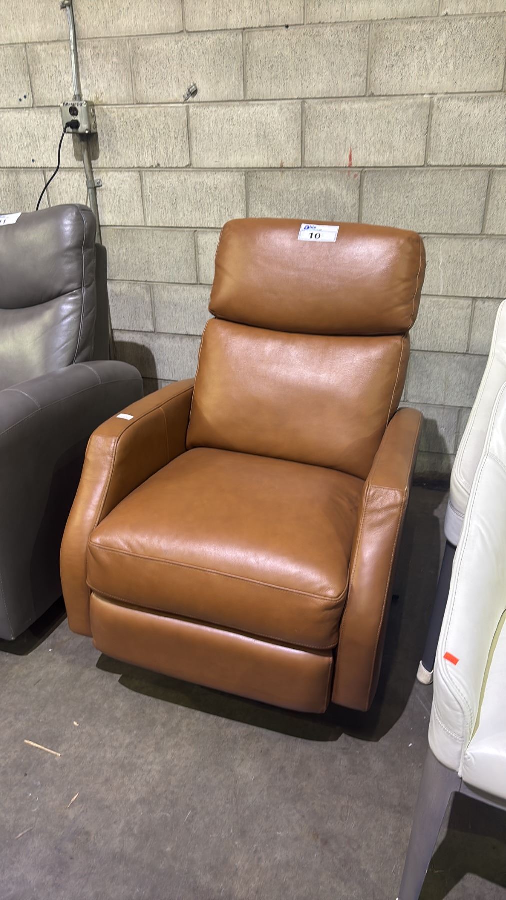 BROWN LEATHER SWIVEL ROCKING RECLINER