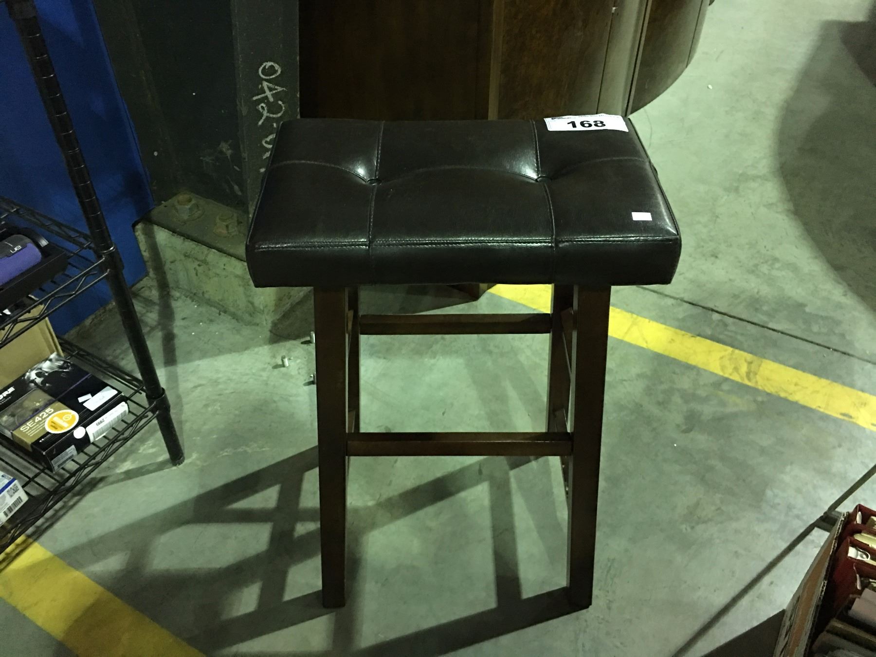 BROWN LEATHER UPHOLSTERED BAR STOOL